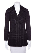 Burberry Black Plaid Knit Button Up Jacket SZ 2
