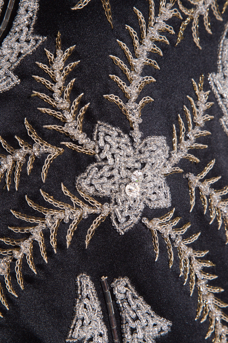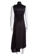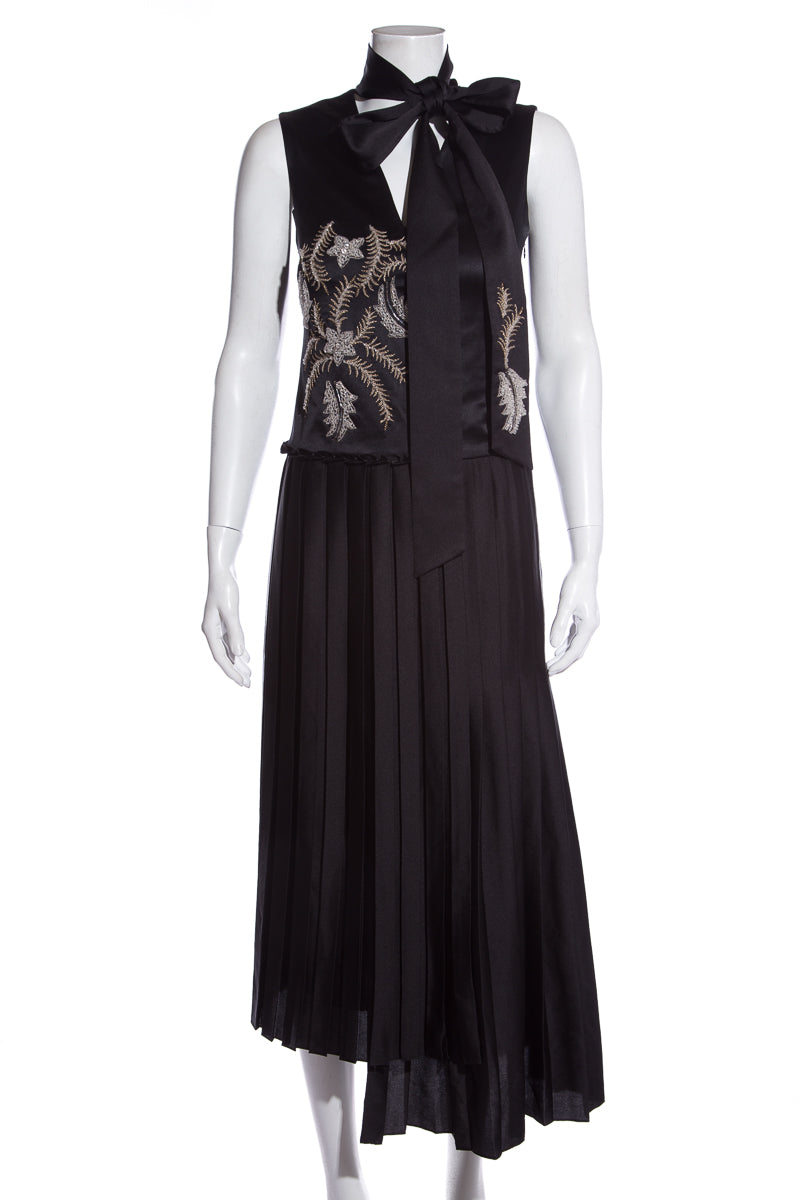 Burberry Black Satin Embellished Pleated Dress SZ 2