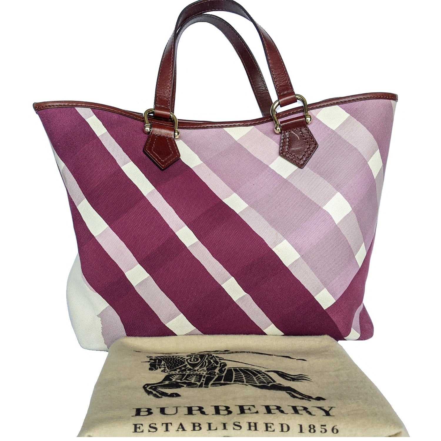 Burberry Canvas Purple Check Print Tote