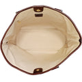 This is a lovely tote that is beautifully crafted of a checked canvas in graduating tones of purple. The bag features dark purple tall leather strap top handles with polished silver-tone hardware. Magnetic closure open to a spacious fabric interior with one large zip pocket. This is a marvelous tote for everyday use.