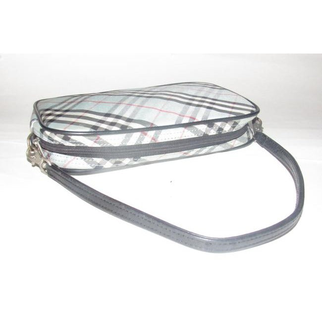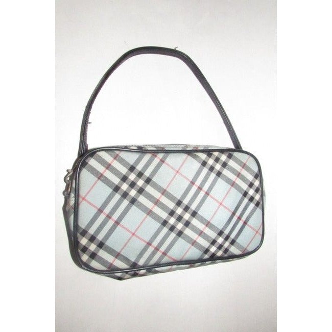 For sale is a classic, Burberry, blue, black, red, and, white, Haymarket plaid design heavy canvas and black leather, two-way- shoulder bag/clutch or belt bag/fanny pack/bum bag/waist wallet with a removable leather strap, interior pockets, a zip top closure, chrome accents, and with lots of room! This versatile piece from Burberry is a great looking way to take advantage of a must have piece from a must have designer without breaking the bank!