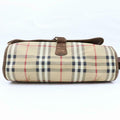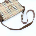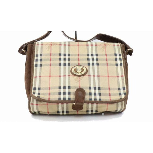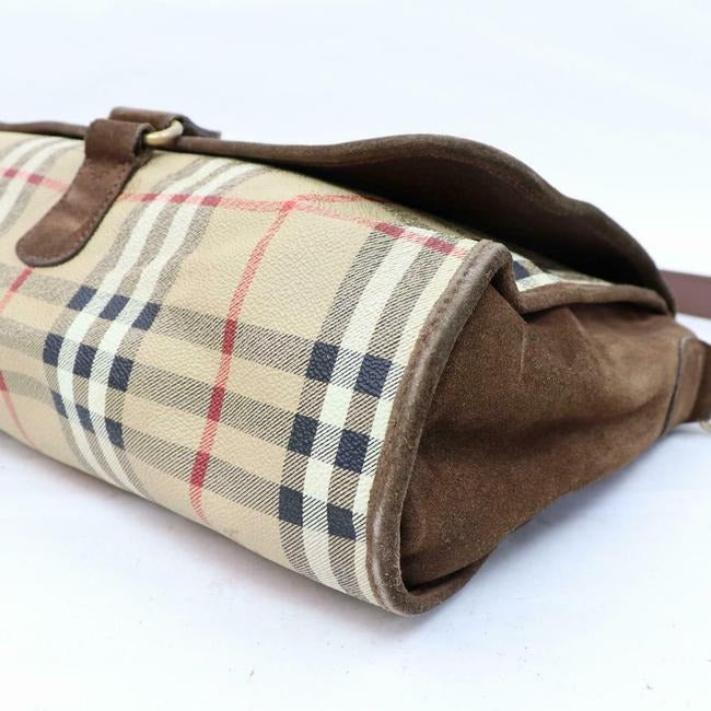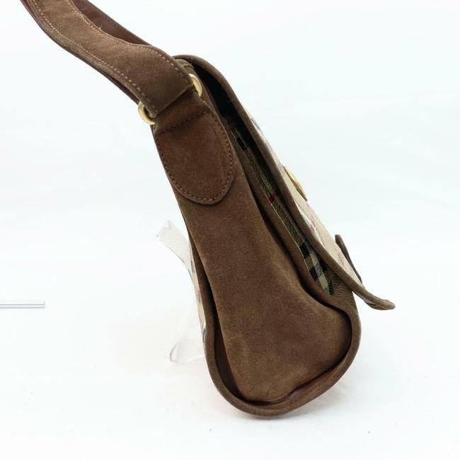 Burberry Early Two Way Style Bodyshoulder Purse Brown Suede And Haymarket Nova Check With Knights Pl