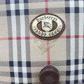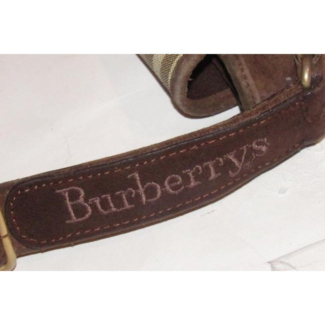 The bag is a cross body or shoulder bag style purse by Burberry's from the 70's to 80's. It is made from the 'Haymarket Nova Check' (please tell me if this is wrong), brown/red/white/black plaid with knights in heavy coated canvas and brown suede with brown leather. It has an envelope style top with a magnetic snap closure. It has a long suede and leather, cross body or shoulder style strap with gold hardware and buckles and 'Burberry's' embossed at the base of the leather strap.
