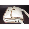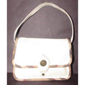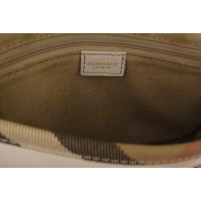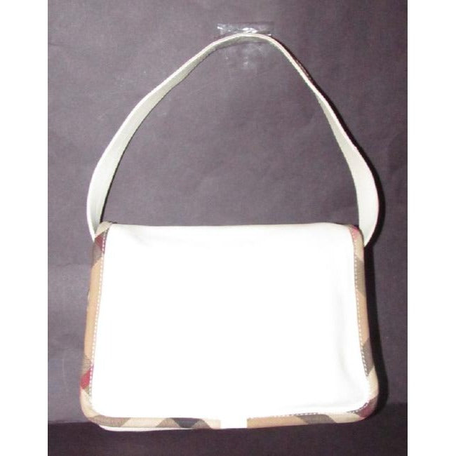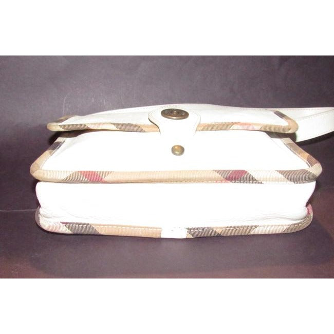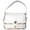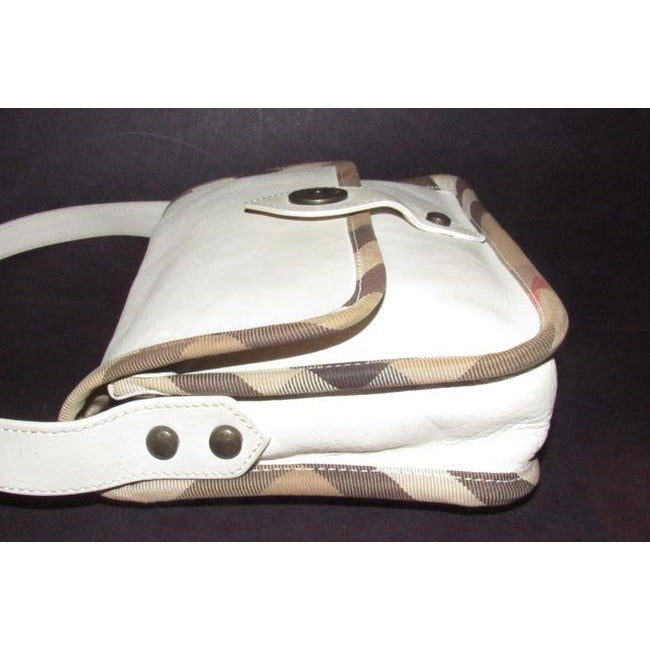 Burberry Purses White Leather With Nova Check Plaid Canvas Trim And Coated Shoulder Bag