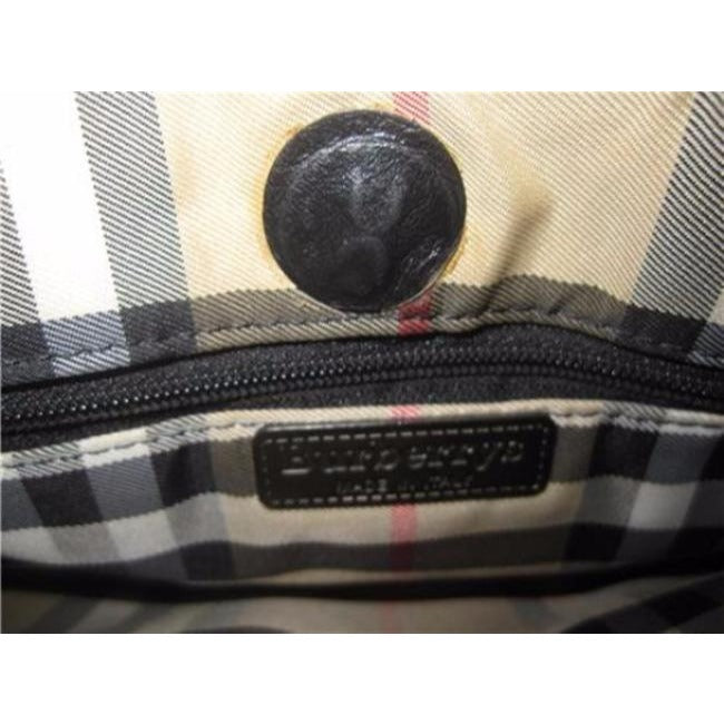 The way the purse is designed is very smart. There are three main compartments- a center, zip closure, surrounded by snap shut compartments. There are smaller compartments within these three large ones. The interior is the signature Burberry Nova print plaid in tan, red, black & white. It looks unused!