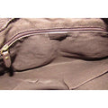 The way the purse is designed is very smart. It has a simple brown fabric lining that is very clean. There is one main compartment and smaller pockets in the center with open and zip closures. It looks very lightly used! It has a leather tag that reads 'Burberry, London' on one side and 'Made in Italy' on the other side. The piece is in mint condition!