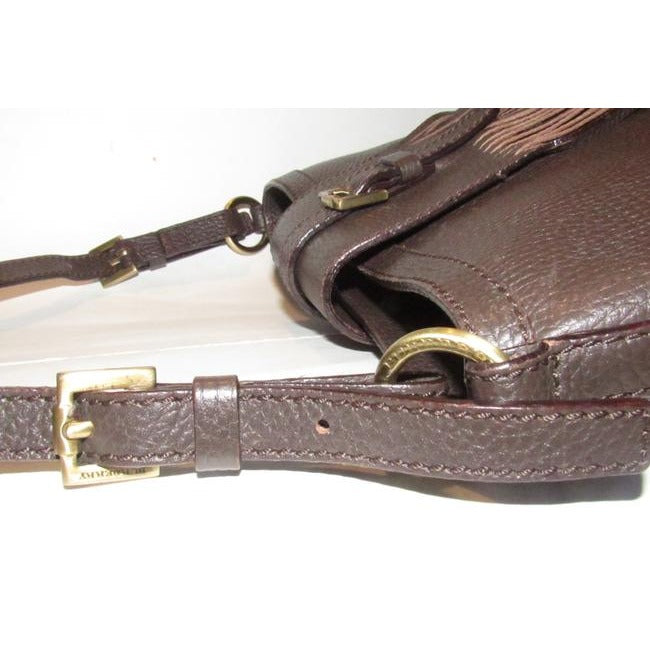 Burberry Style Shoulder Purses Brown Leather With Fringe And Equestrian Accents Hobo Bag