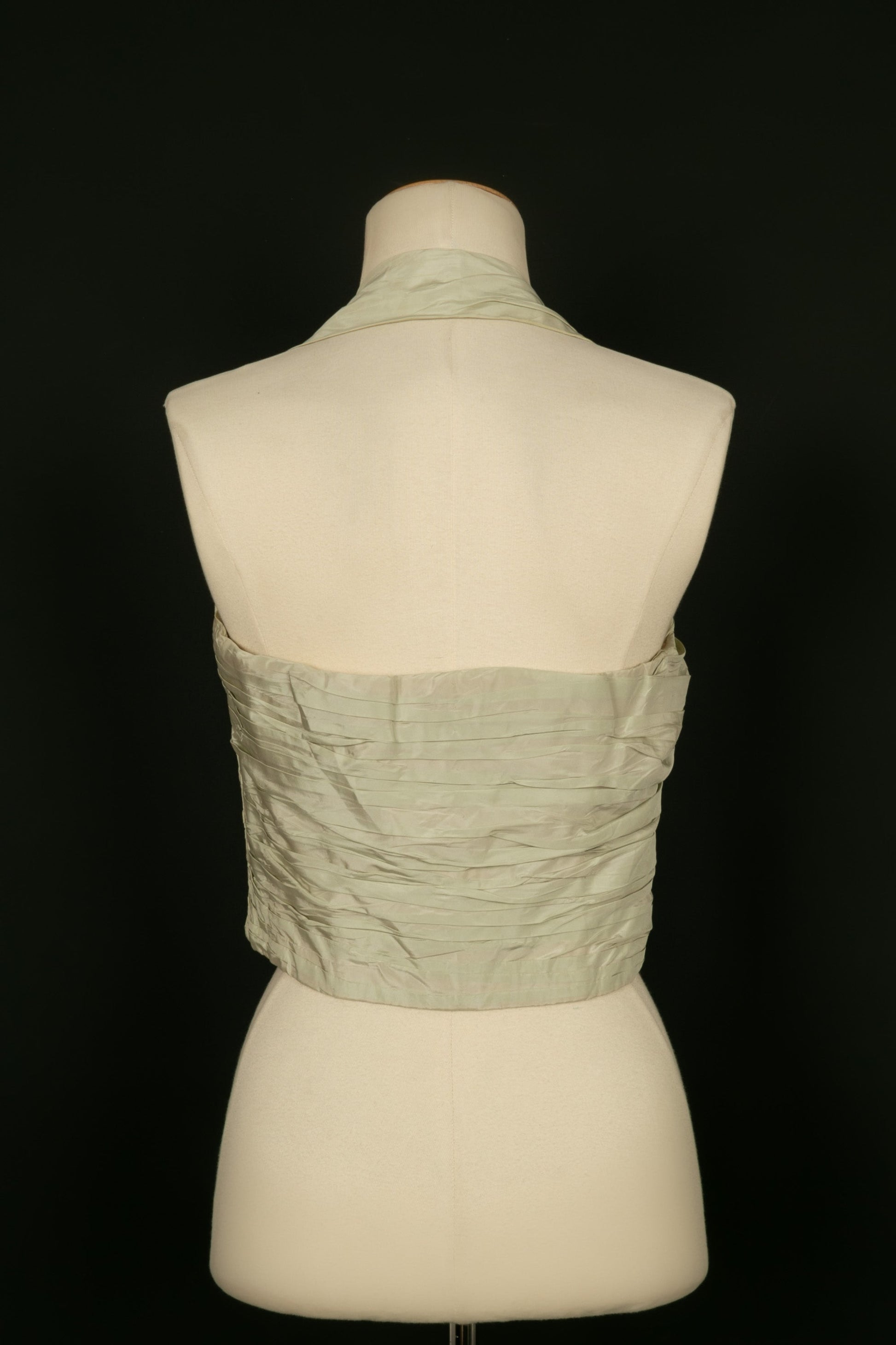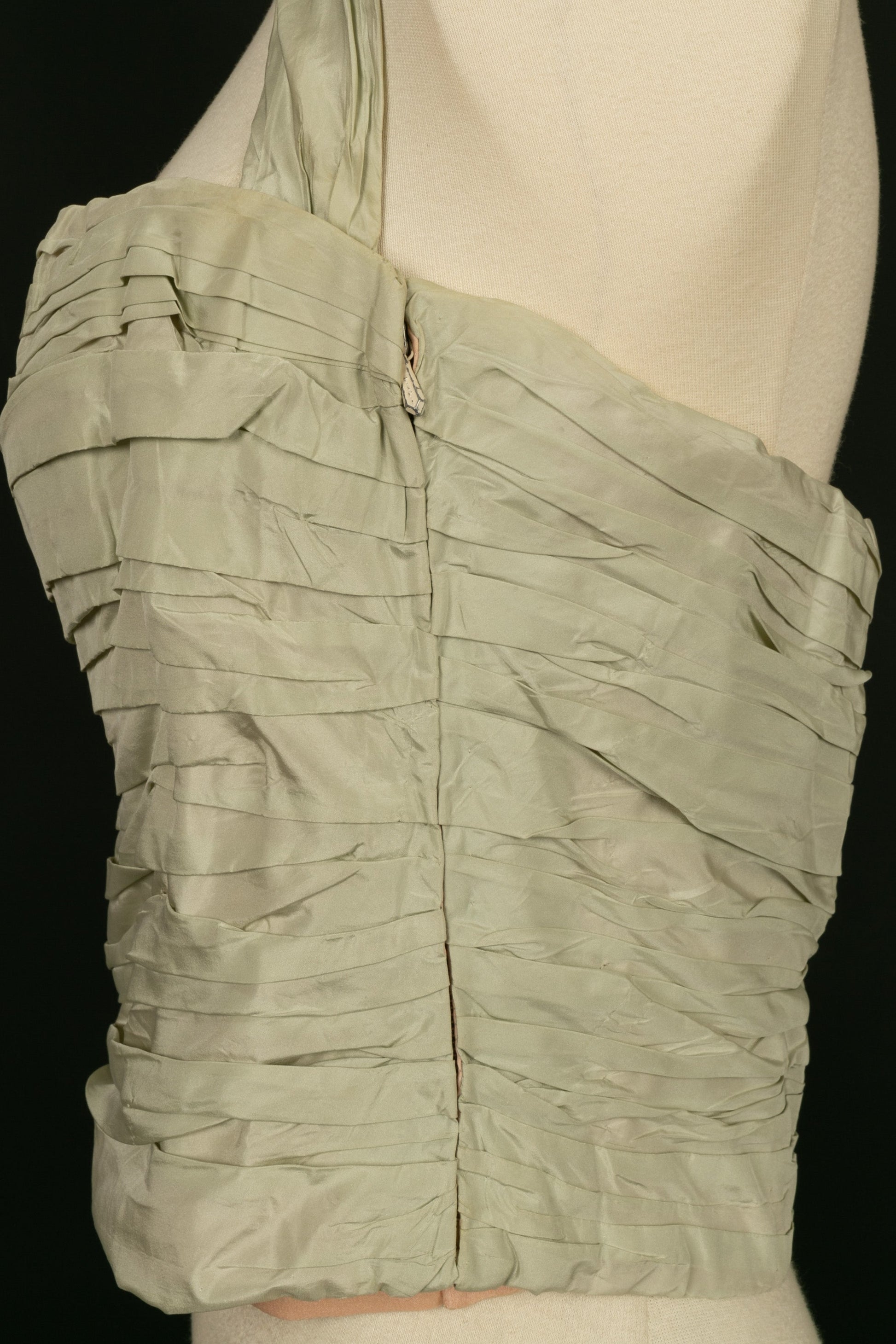 CHANEL - Bustier Haute Couture en taffetas de soie et son �tole dans les tons de vert. Aucune �tiquette de taille ou de composition, il convient � un 36FR. Pi�ce datant des ann�es 1985-1990.