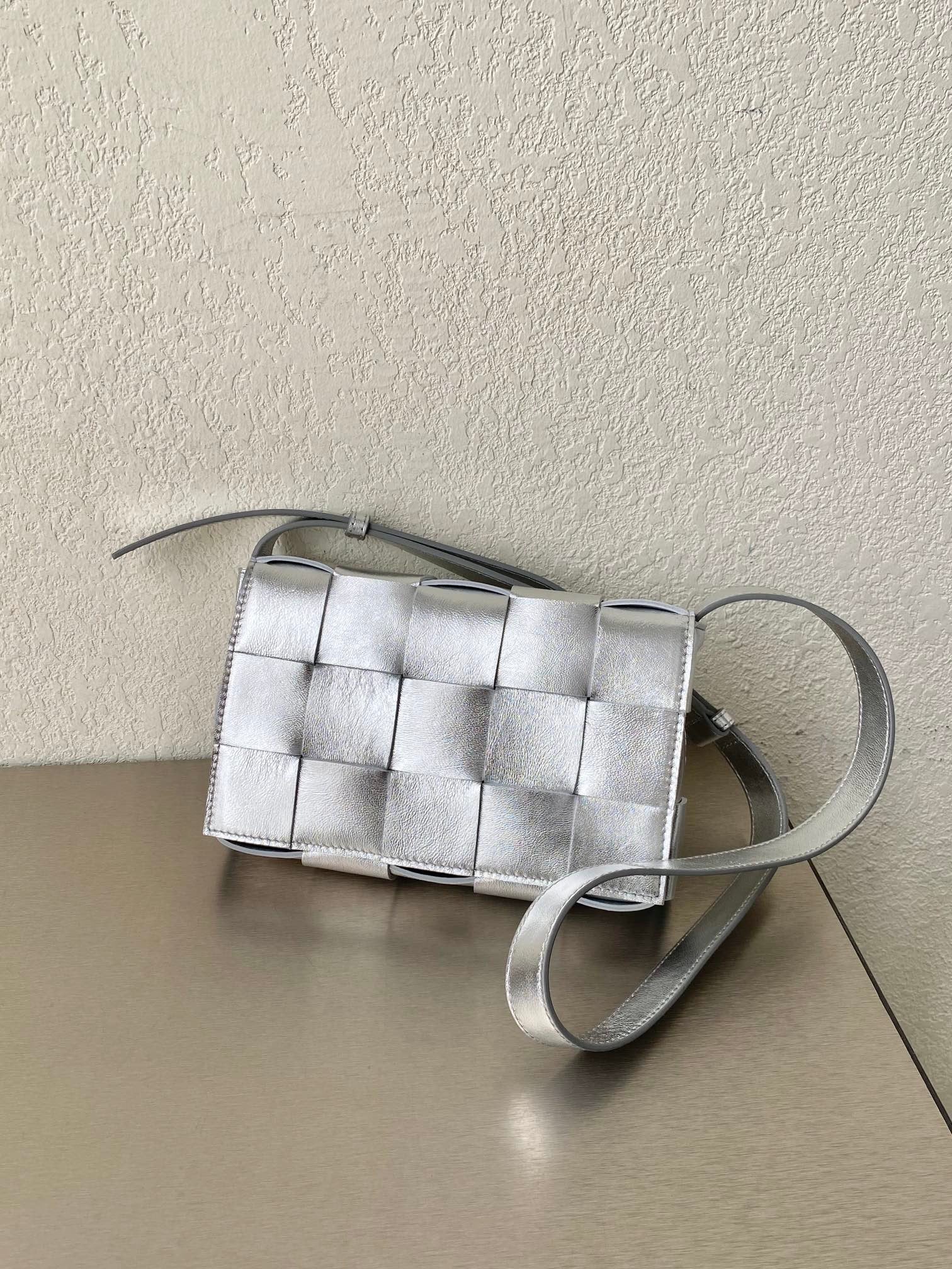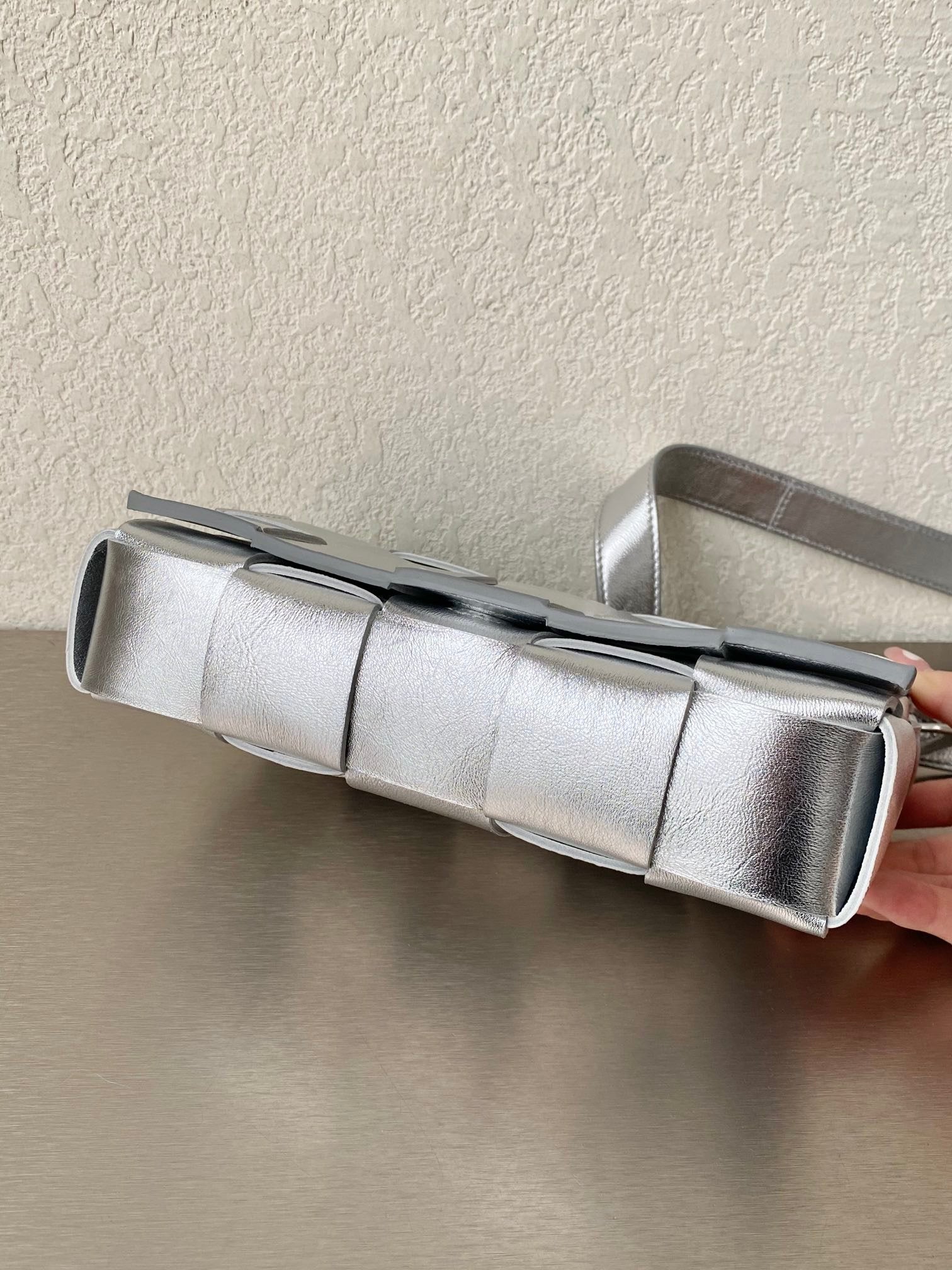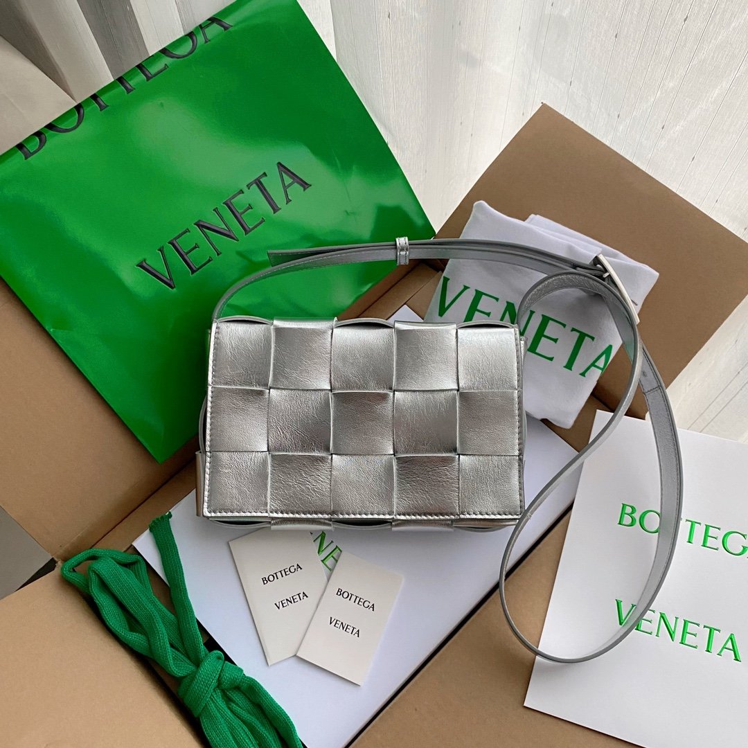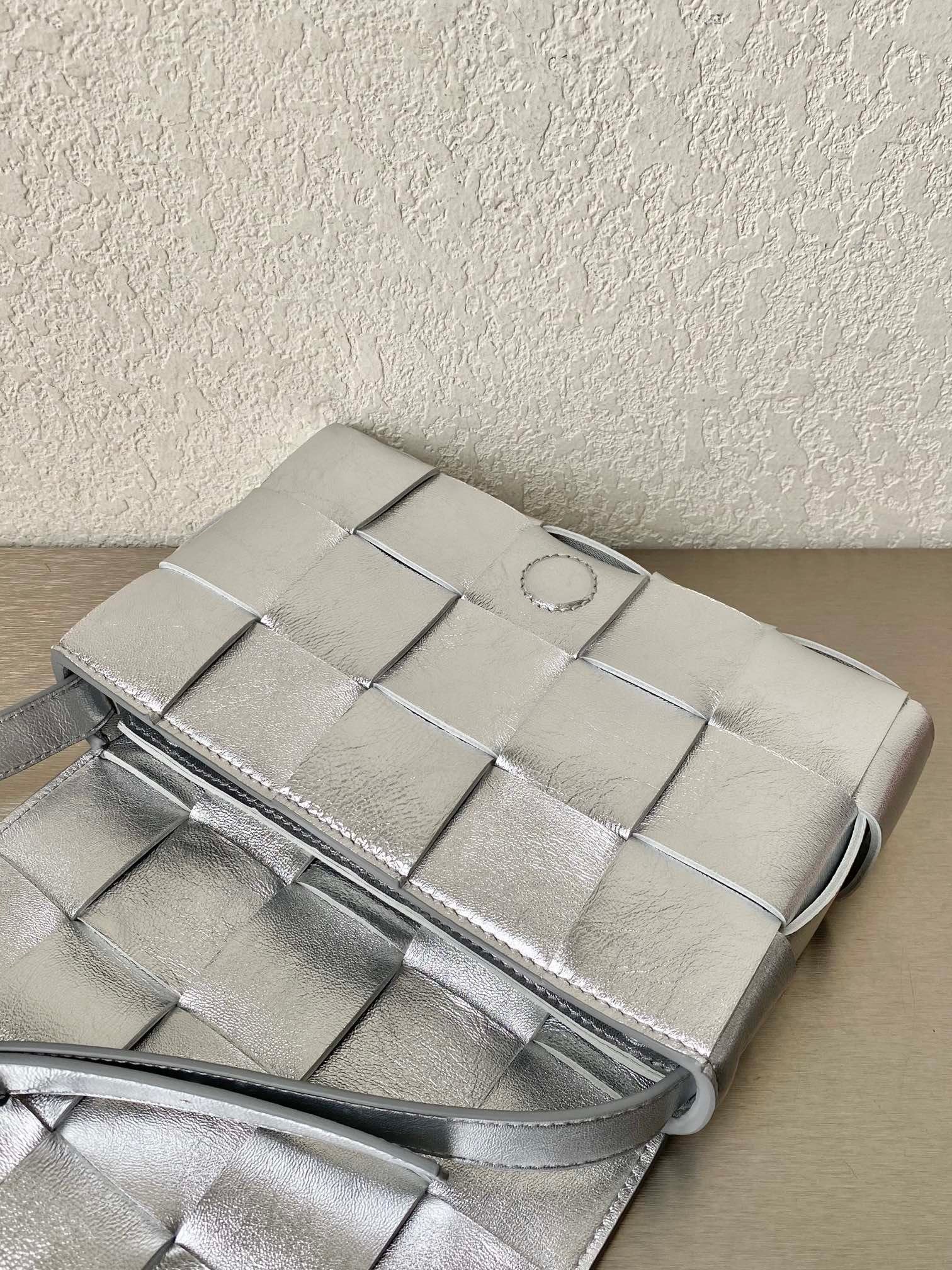 BV Cassette Crossbody Bag Silver, For Womtlm, Bags 9.1in/23cm