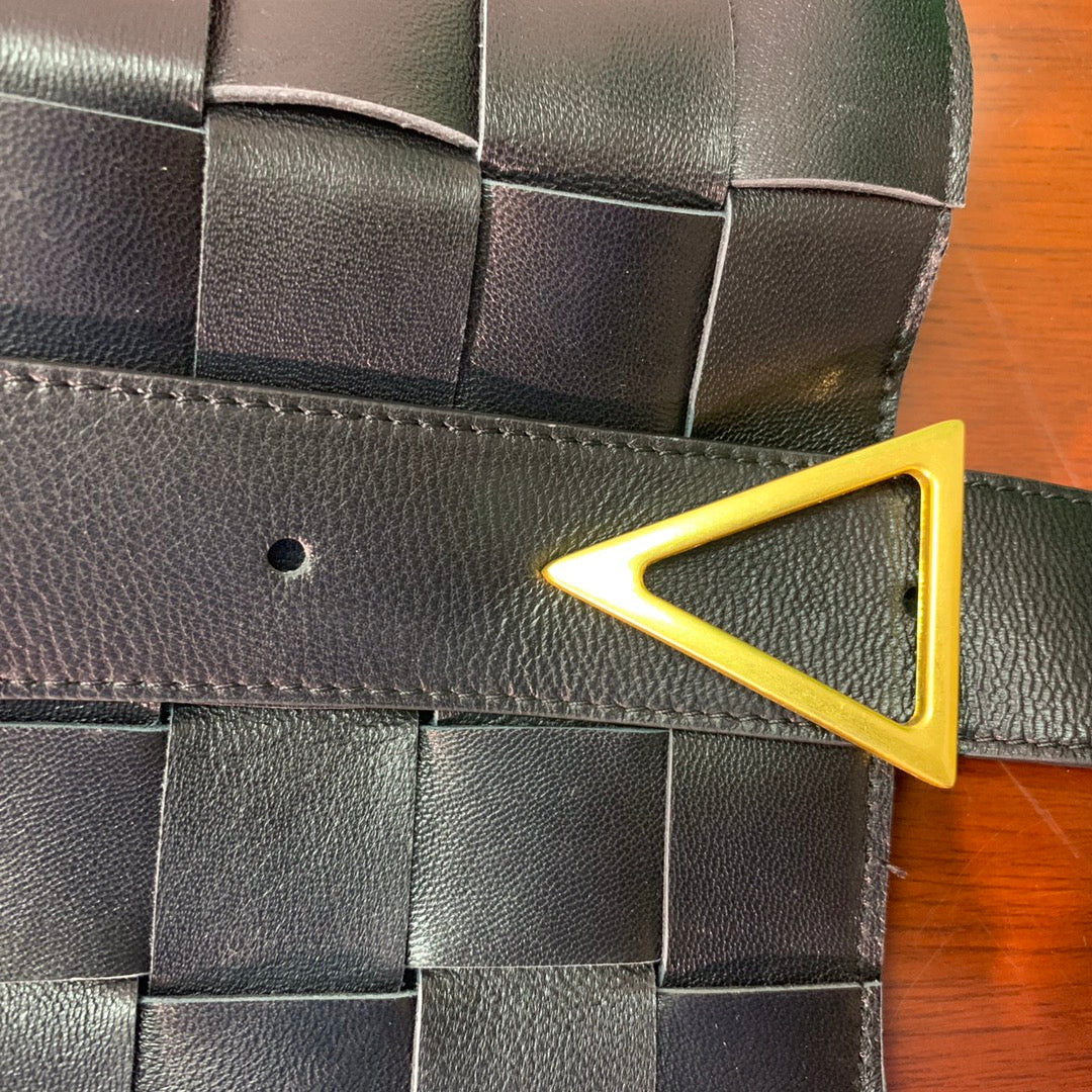 Signature triangle buckle.