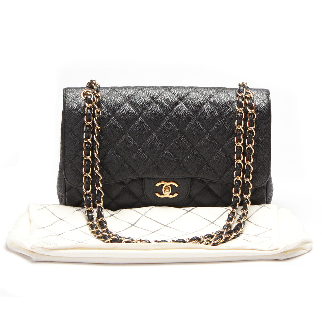 Chanel Caviar Jumbo Classic Double Flap Bag Leather Shoulder Bag in Excellent condition