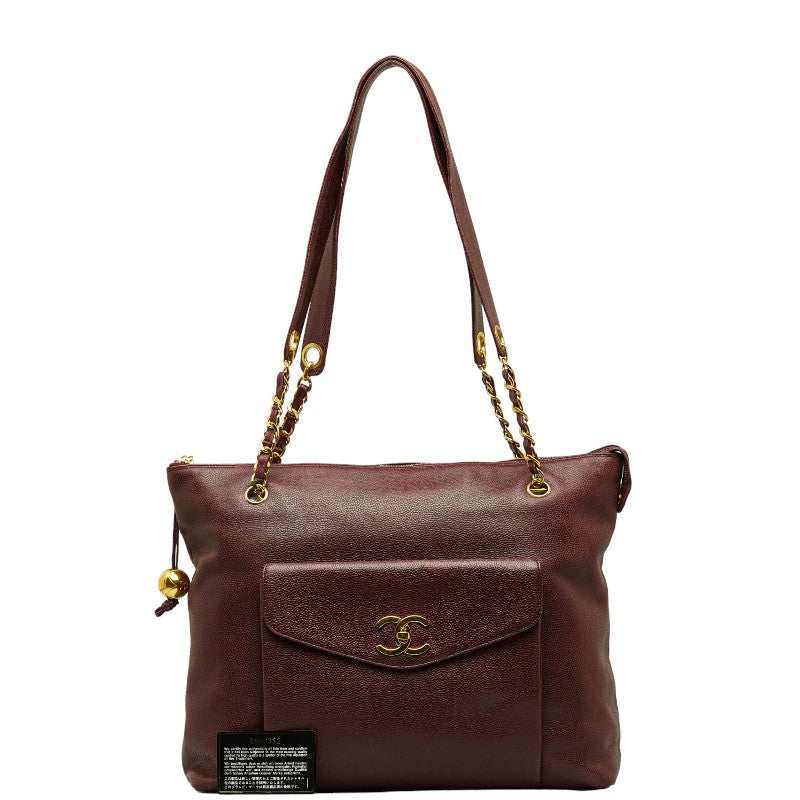 Chanel CC Caviar Chain Tote Leather Tote Bag in Good condition