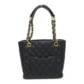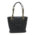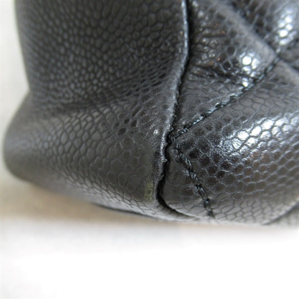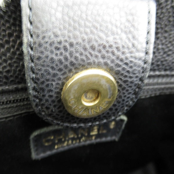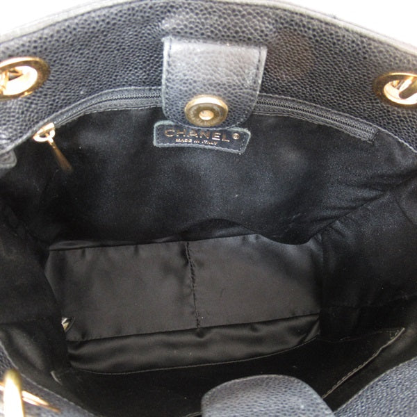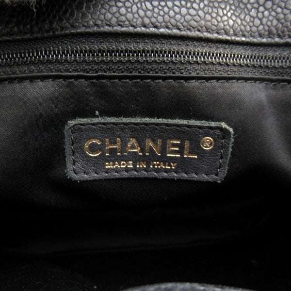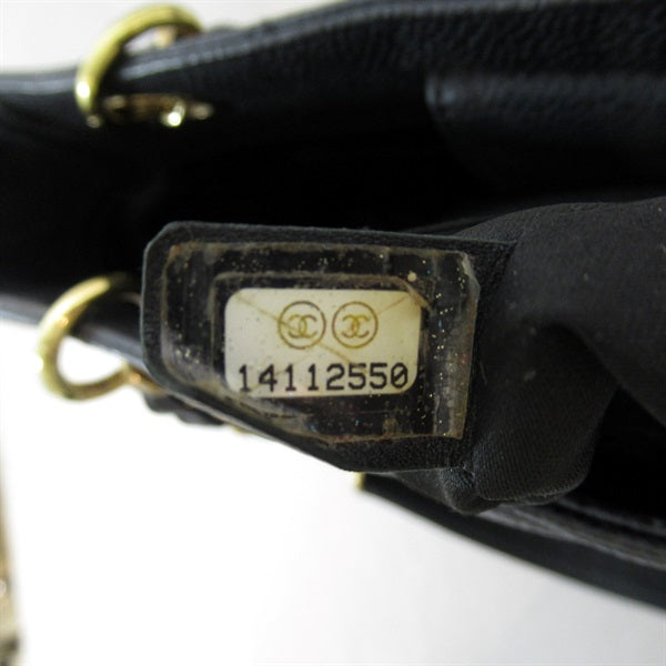 This CC Caviar Grand Shopping Tote features a Black Caviar leather.