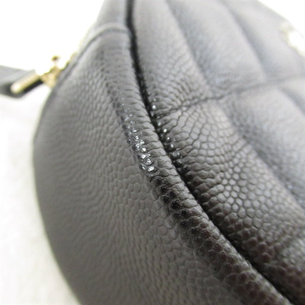 This CC Caviar Round Clutch Bag features a Black Caviar leather.