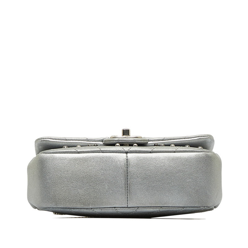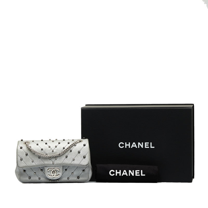 Chanel CC Chevron Studded Leather Flap Bag Leather Shoulder Bag in Good condition