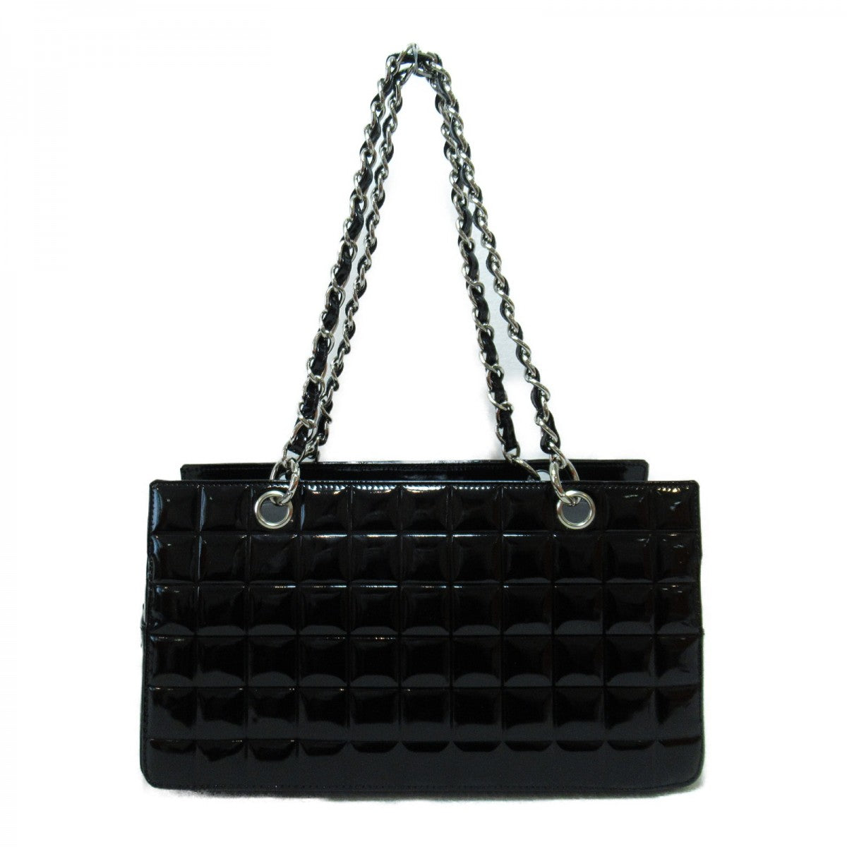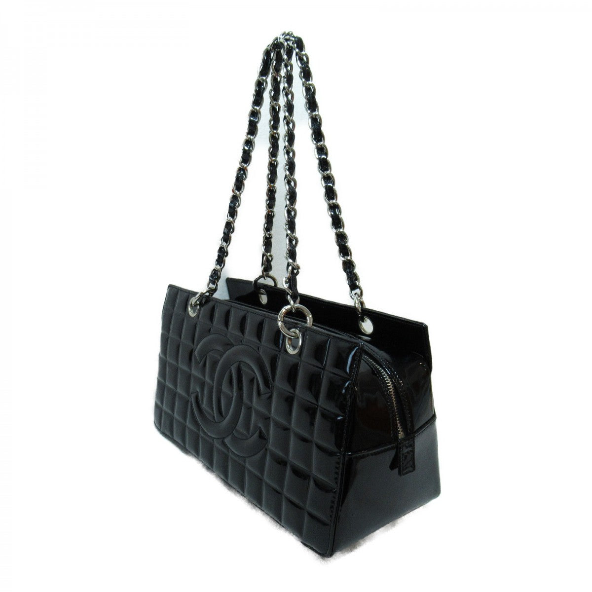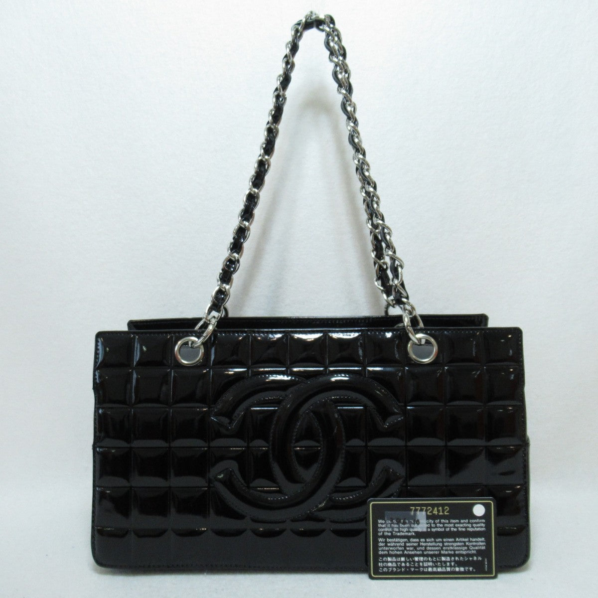 Chanel CC Choco Bar Patent Leather Zip Tote Leather Tote Bag in Excellent condition
