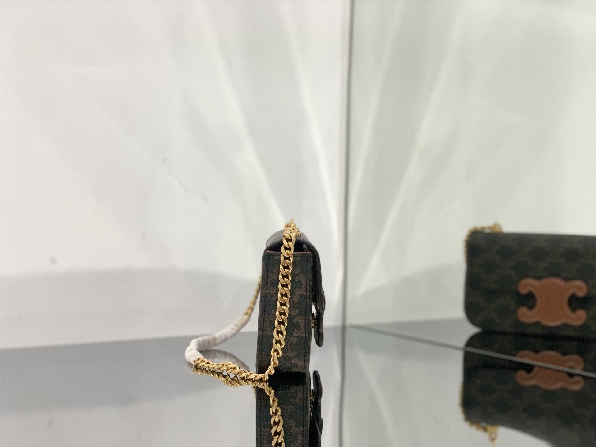 CE Chain Shoulder Bag Cuir Triomphe In Triomphe Canvas Tan For Womtlm 7.9in/20cm