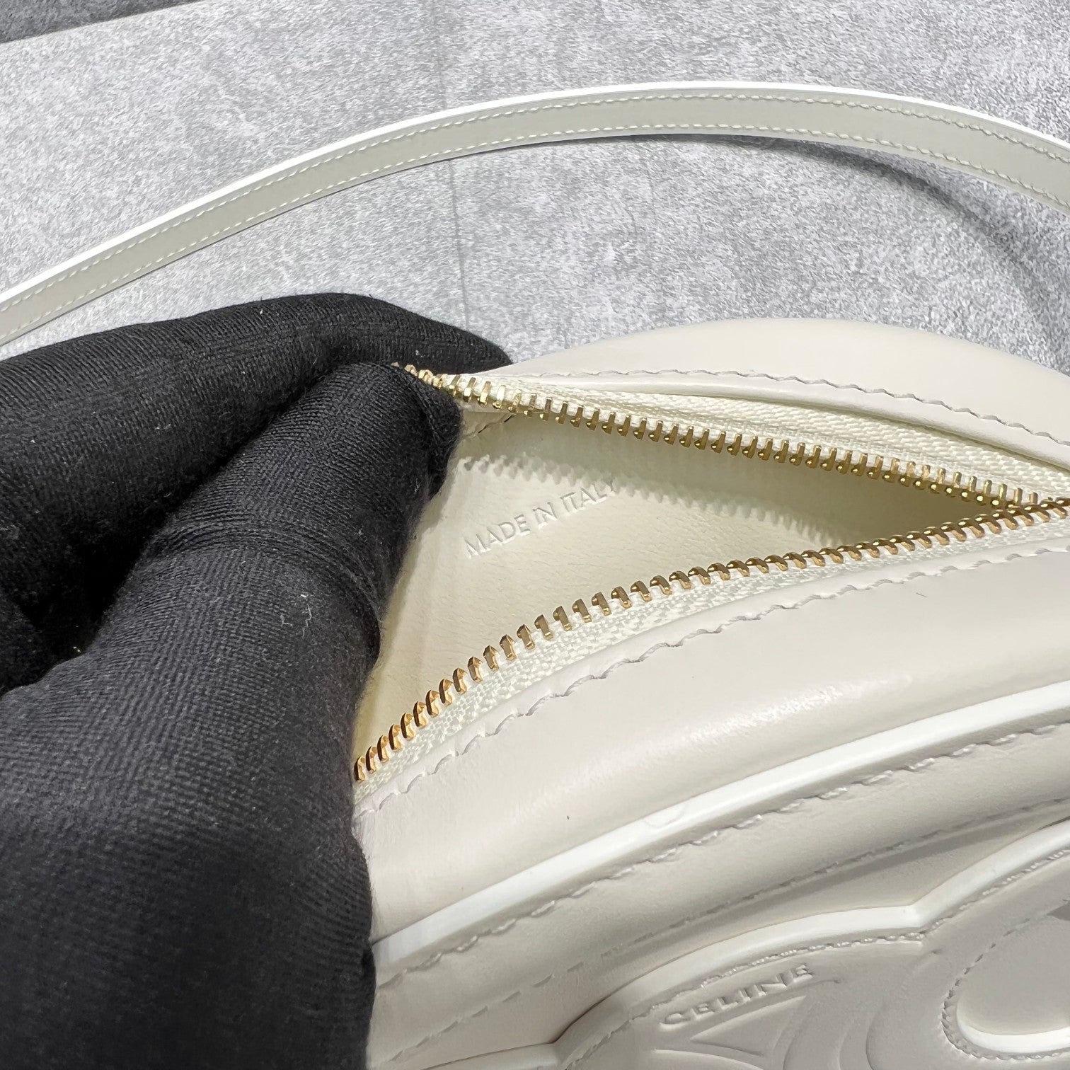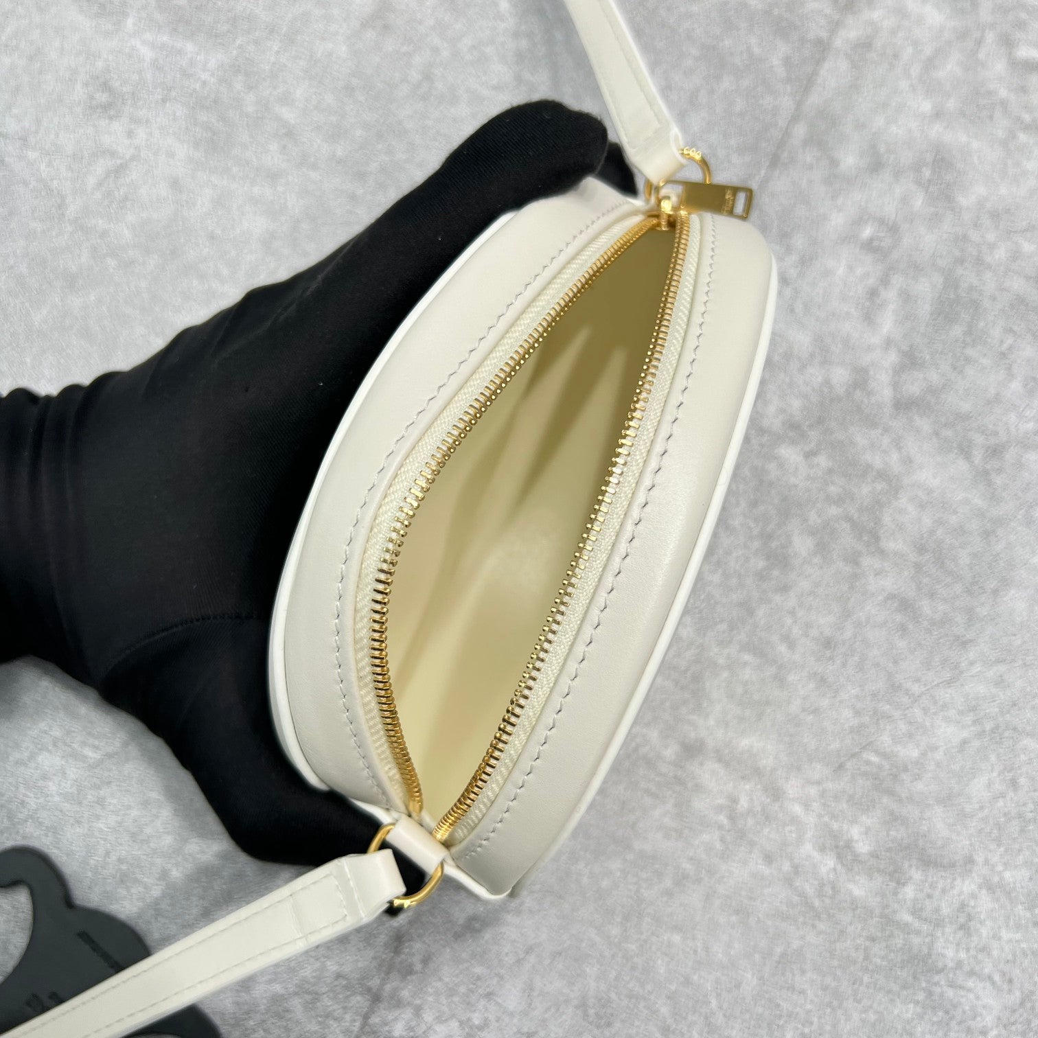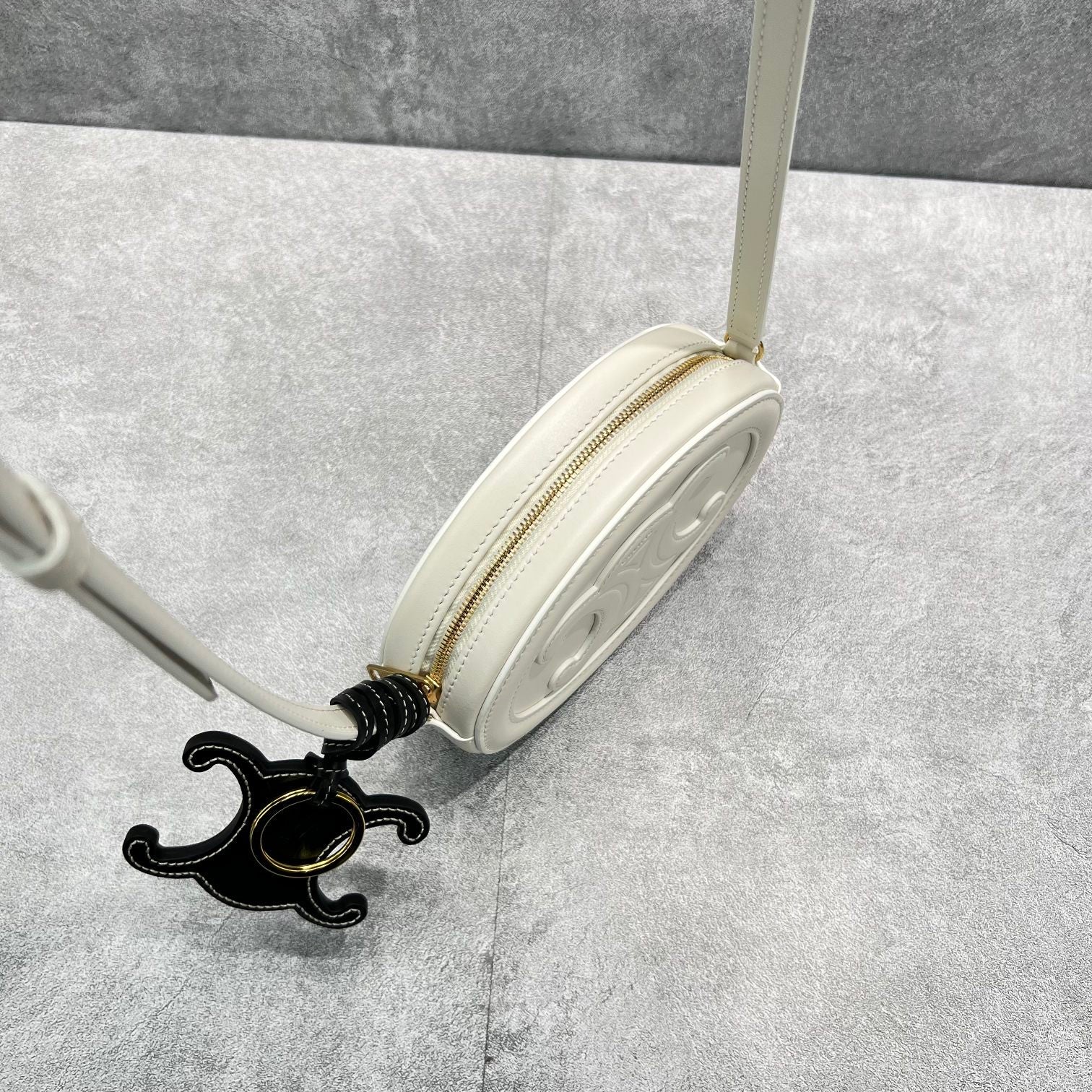 CLN Crossbody Oval Purse Cuir Triomphe White For Womtlm 6in/16cm