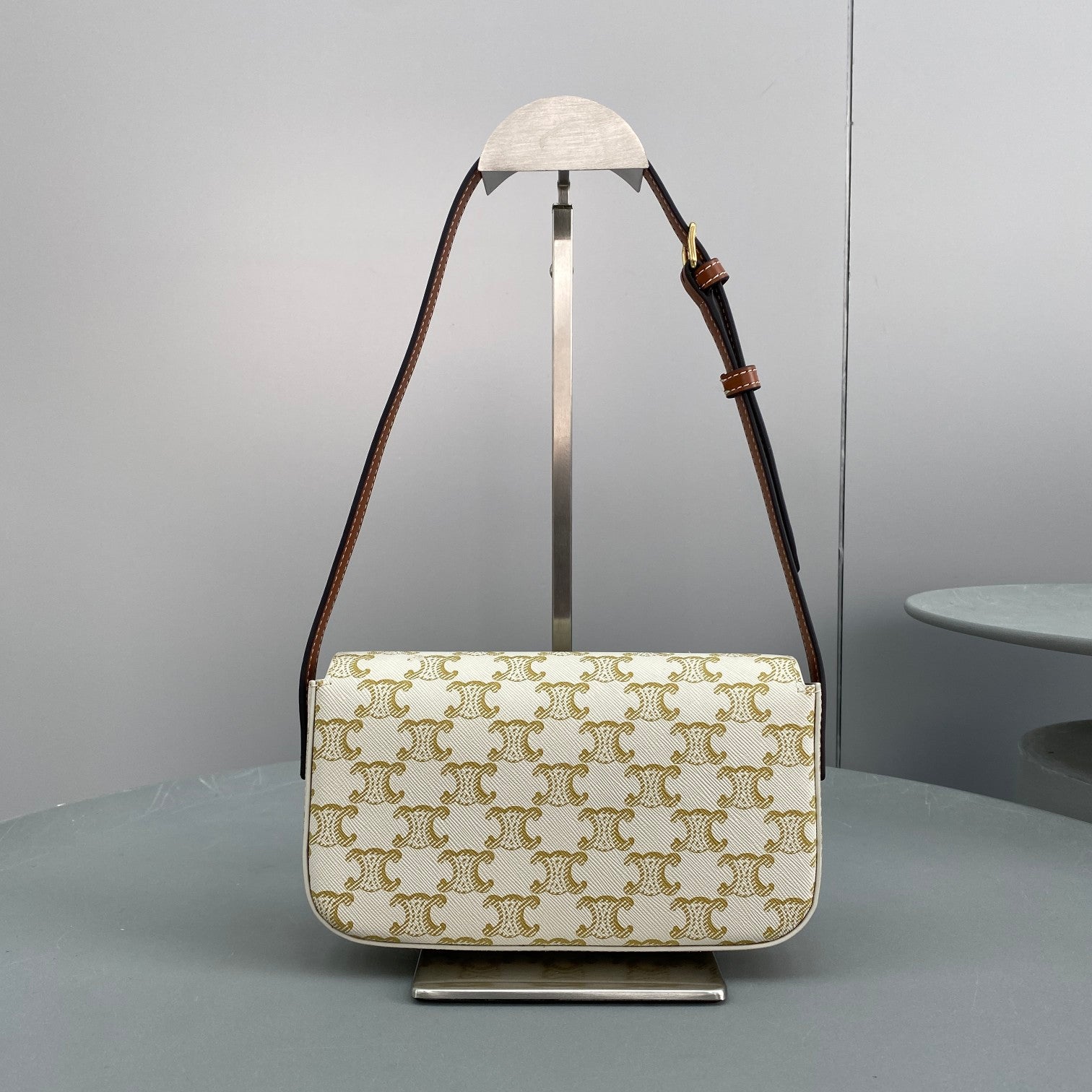 CE Triomphe Shoulder Bag In Triomphe Canvas White For Womtlm 8in/20cm 194142CUZ.01BC