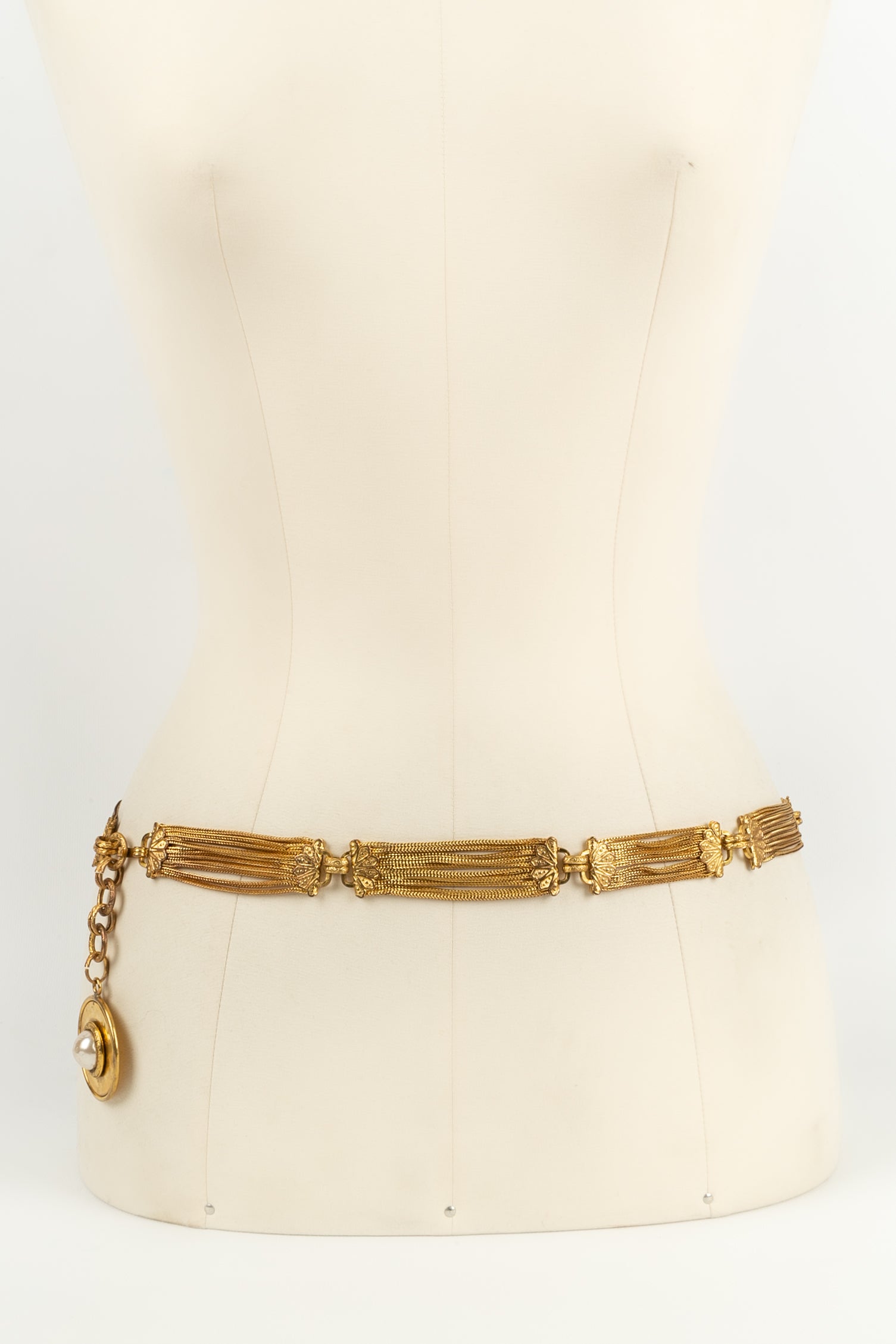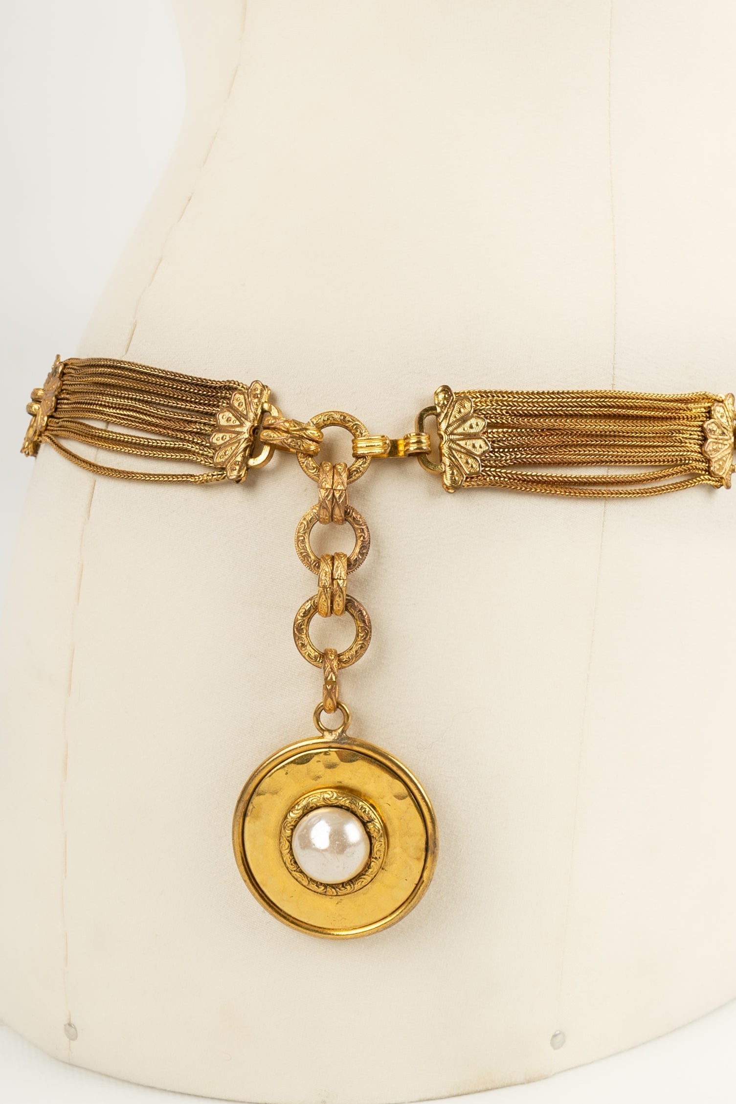 CHANEL - Ceinture bijou en m�tal dor� et cabochon de nacre.