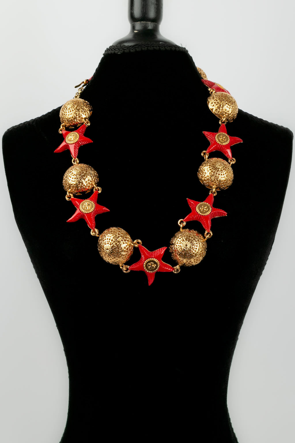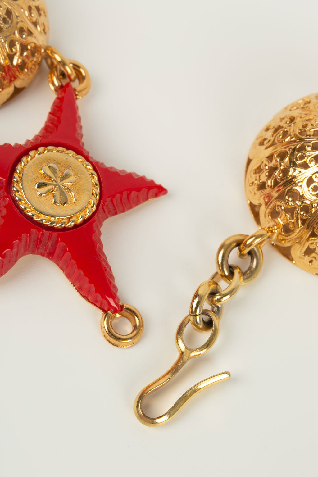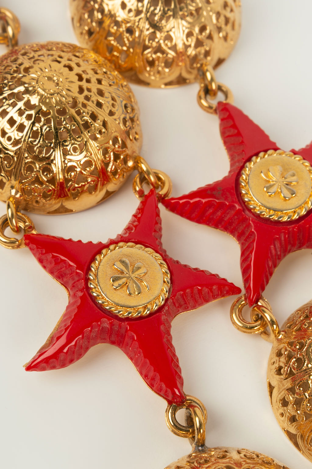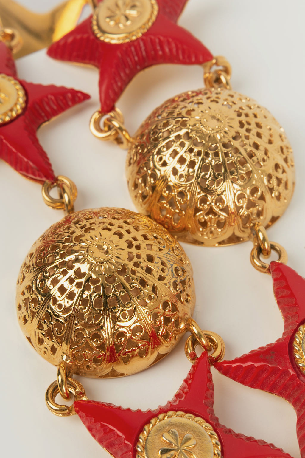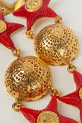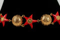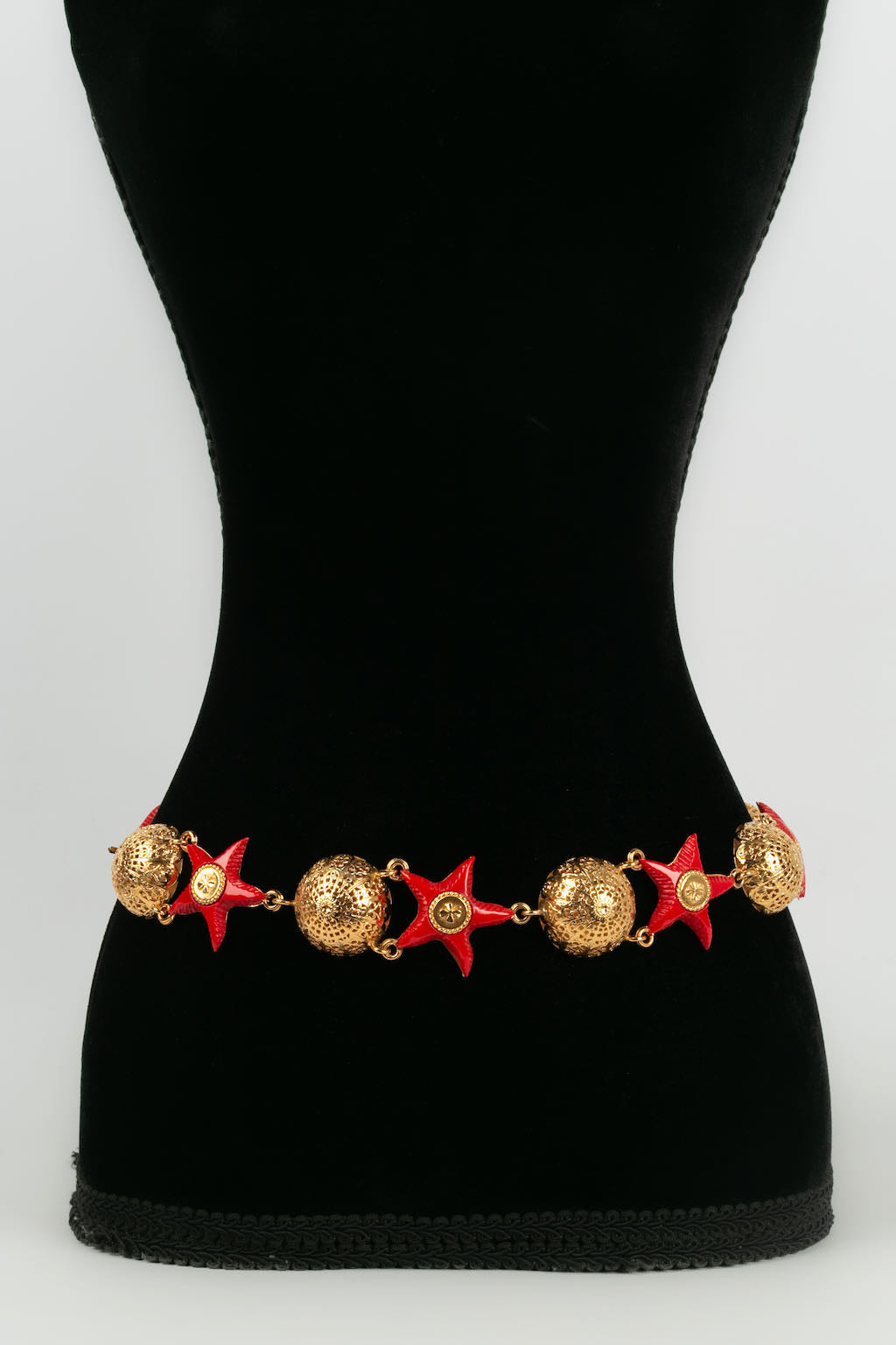 CHANEL -Ceinture en m�tal dor� et �toiles en r�sine rouge. Collection Pr�t-�-porter Printemps-Et� 1989.