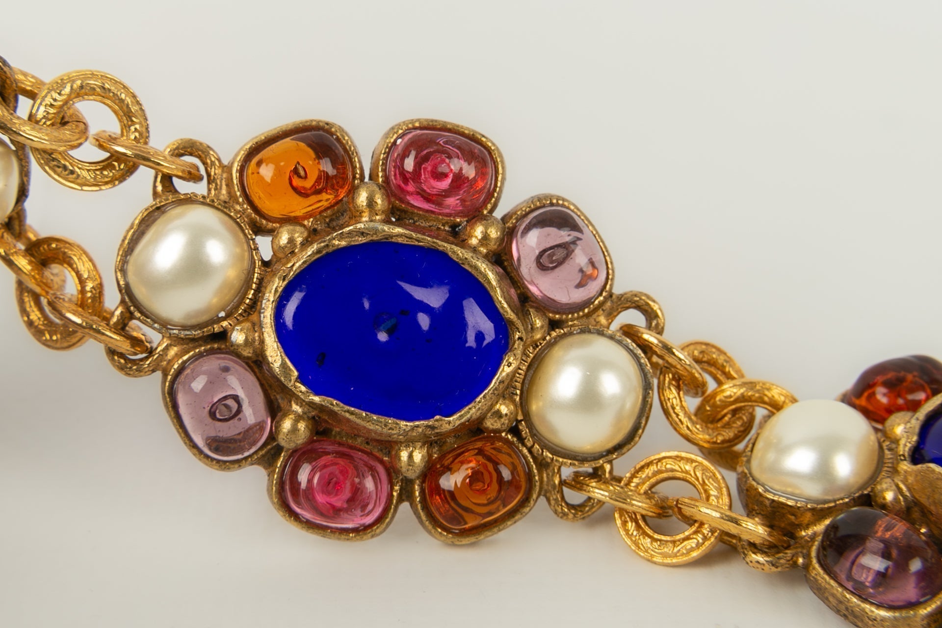 CHANEL - Ceinture en m�tal dor�, p�te de verre et cabochons nacr�s. Collection 1984.