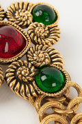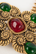 CHANEL -(Made in France) Ceinture en métal doré, pâte de verre verte et rouge. Collection 1985.