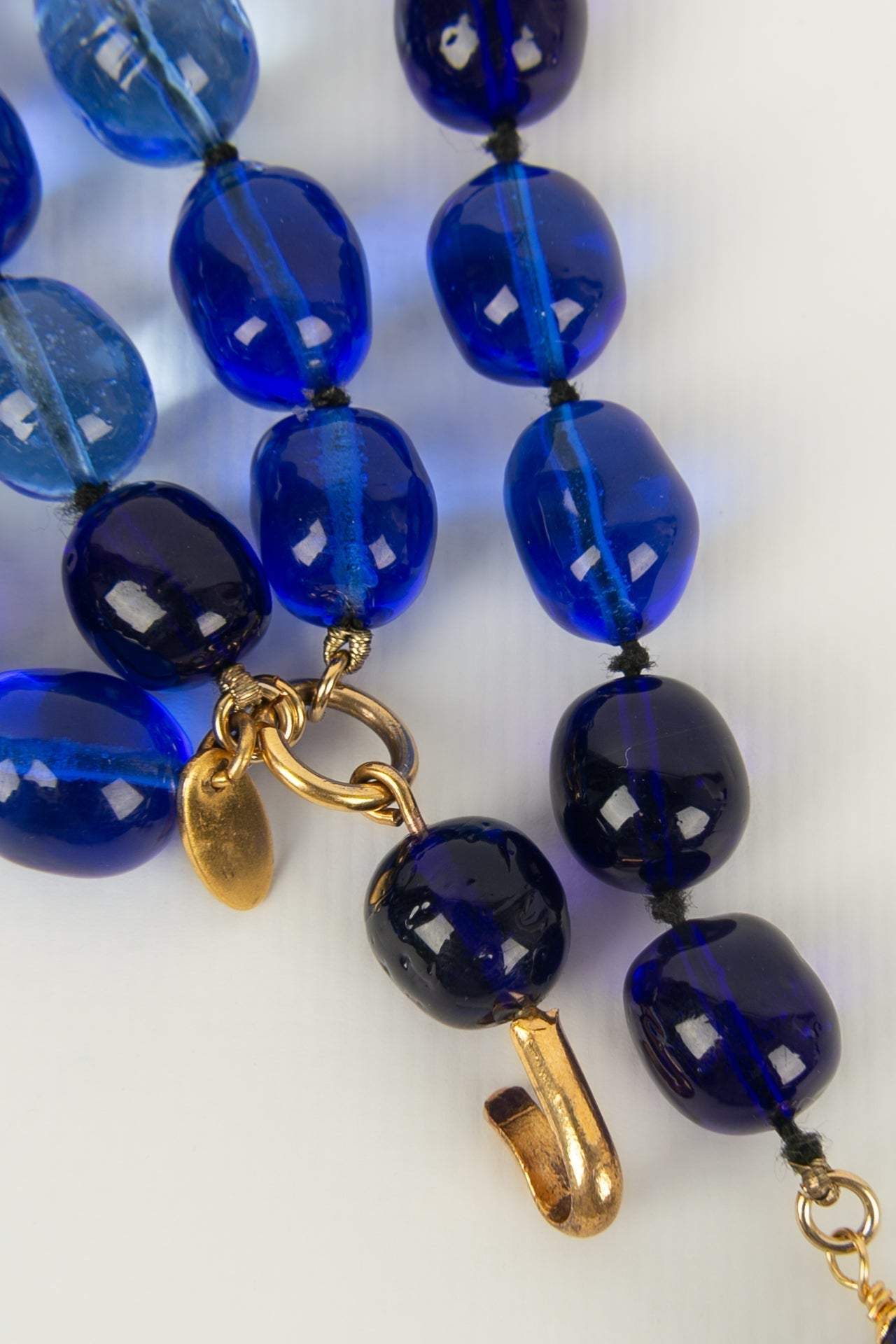 Note: Our Items are totally New High quality Brand Inspired Refurbished. Please make sure you are well aware of it before buying any of the Item. T&C's Apply in case of refunds.Please send us message on below chat to confirm availability. We will send the Refurbished Model in case you place an order with us. Enjoy Shopping.Always Send Us message to confirm availability before buying, In case of refund the transaction fee remains non refundable.�Thank�you. Ceinture de perles de verre bleues. Collection Automne/Hiver 1992.