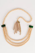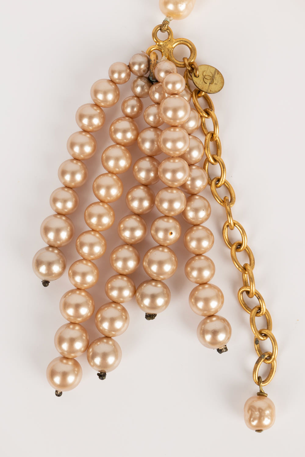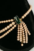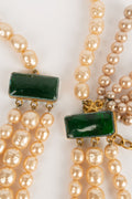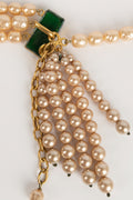 CHANEL -Ceinture de perles nacr�es et p�te de verre verte.