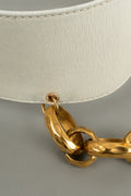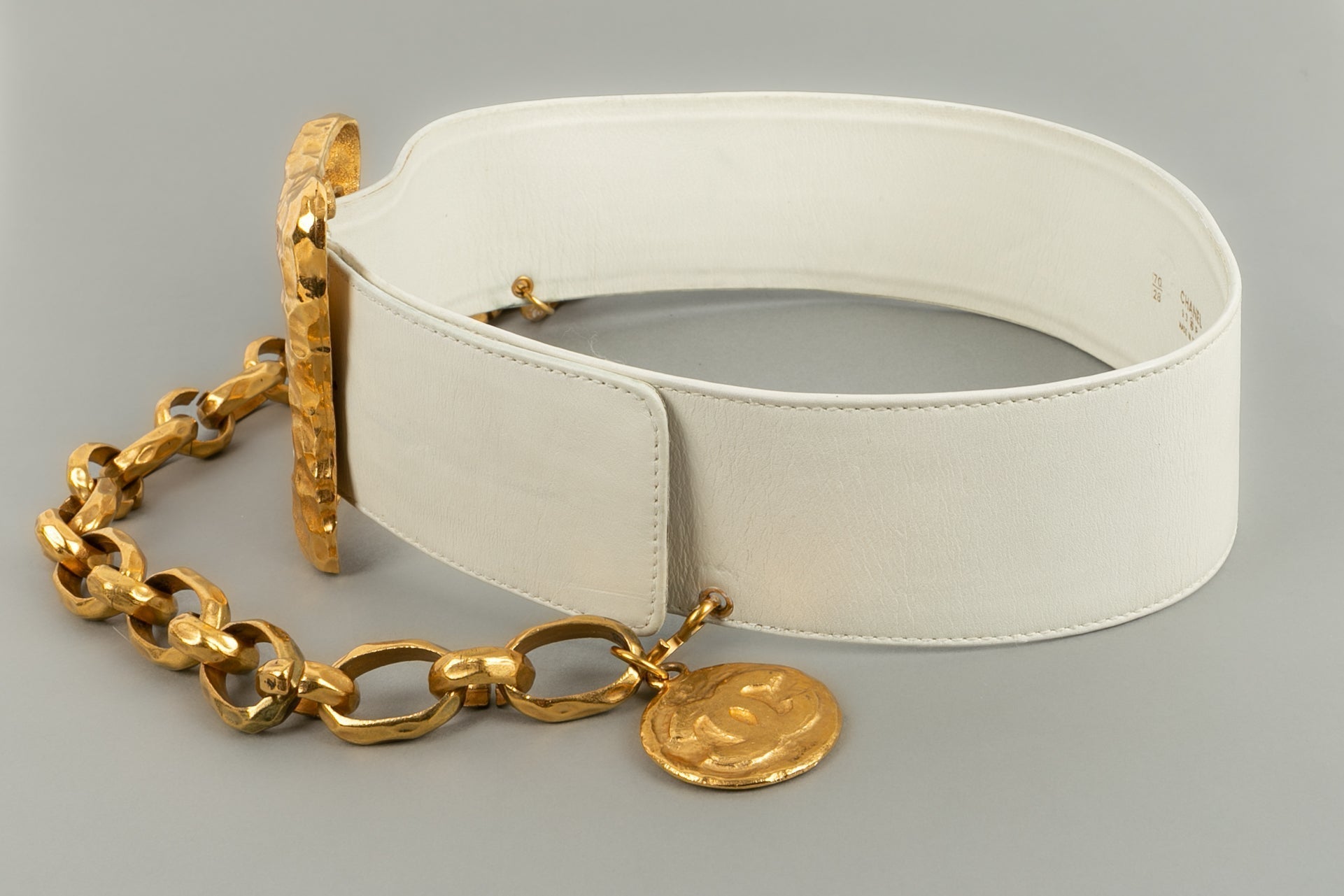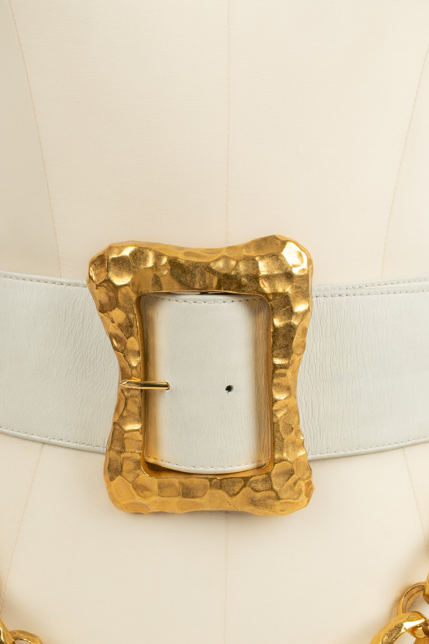 Note: Our Items are totally New High quality Brand Inspired Refurbished. Please make sure you are well aware of it before buying any of the Item. T&C's Apply in case of refunds.Please send us message on below chat to confirm availability. We will send the Refurbished Model in case you place an order with us. Enjoy Shopping.Always Send Us message to confirm availability before buying, In case of refund the transaction fee remains non refundable.�Thank�you. Ceinture en cuir blanc, boucle et cha�ne en m�tal dor� martel�. Taille 70/28. Collection Pr�t-�-porter Printemps/Et� 1993.