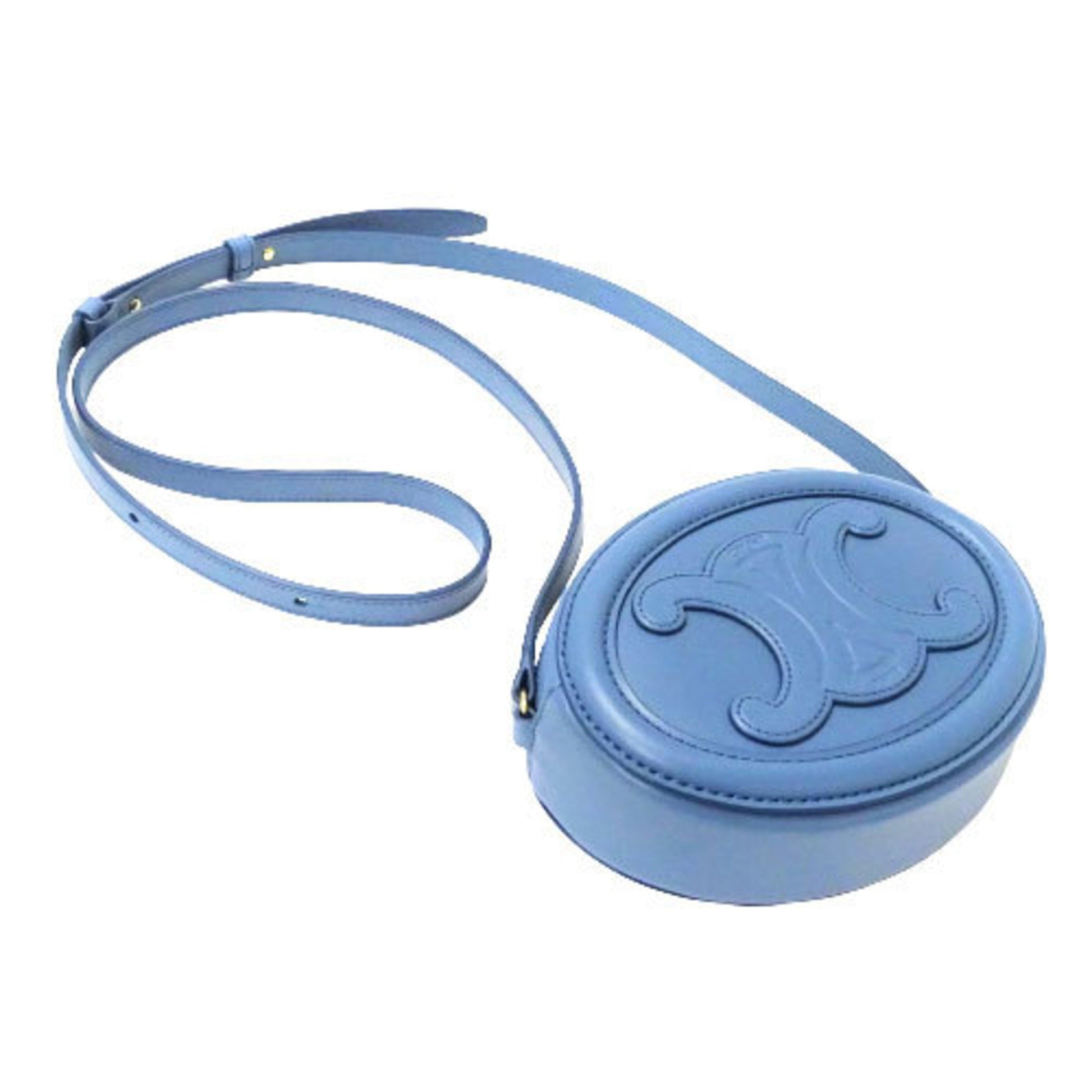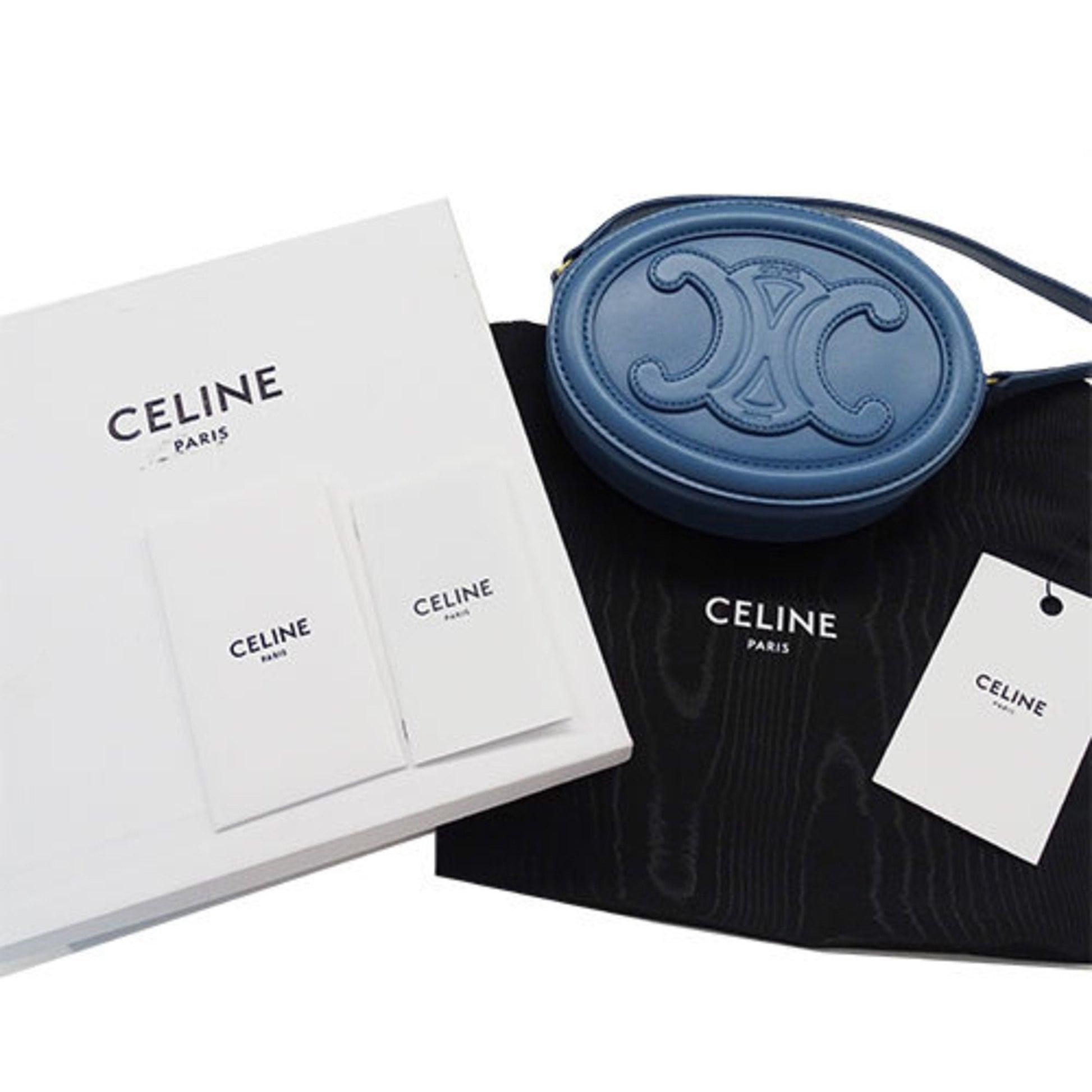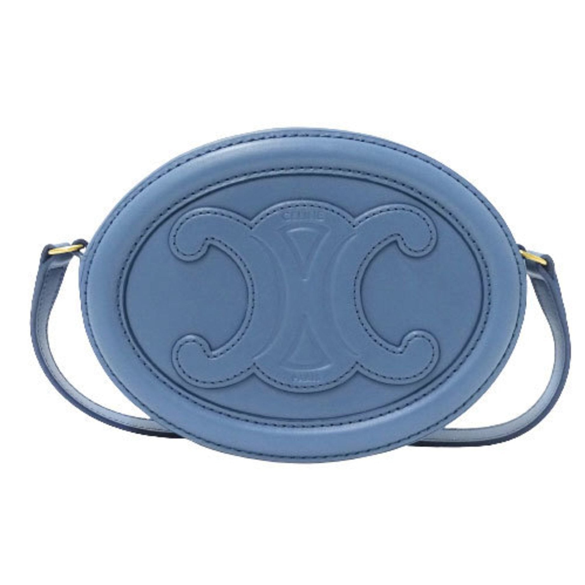 Celine Bag Ladies Triomphe Shoulder Leather Oval Perscuit Blue