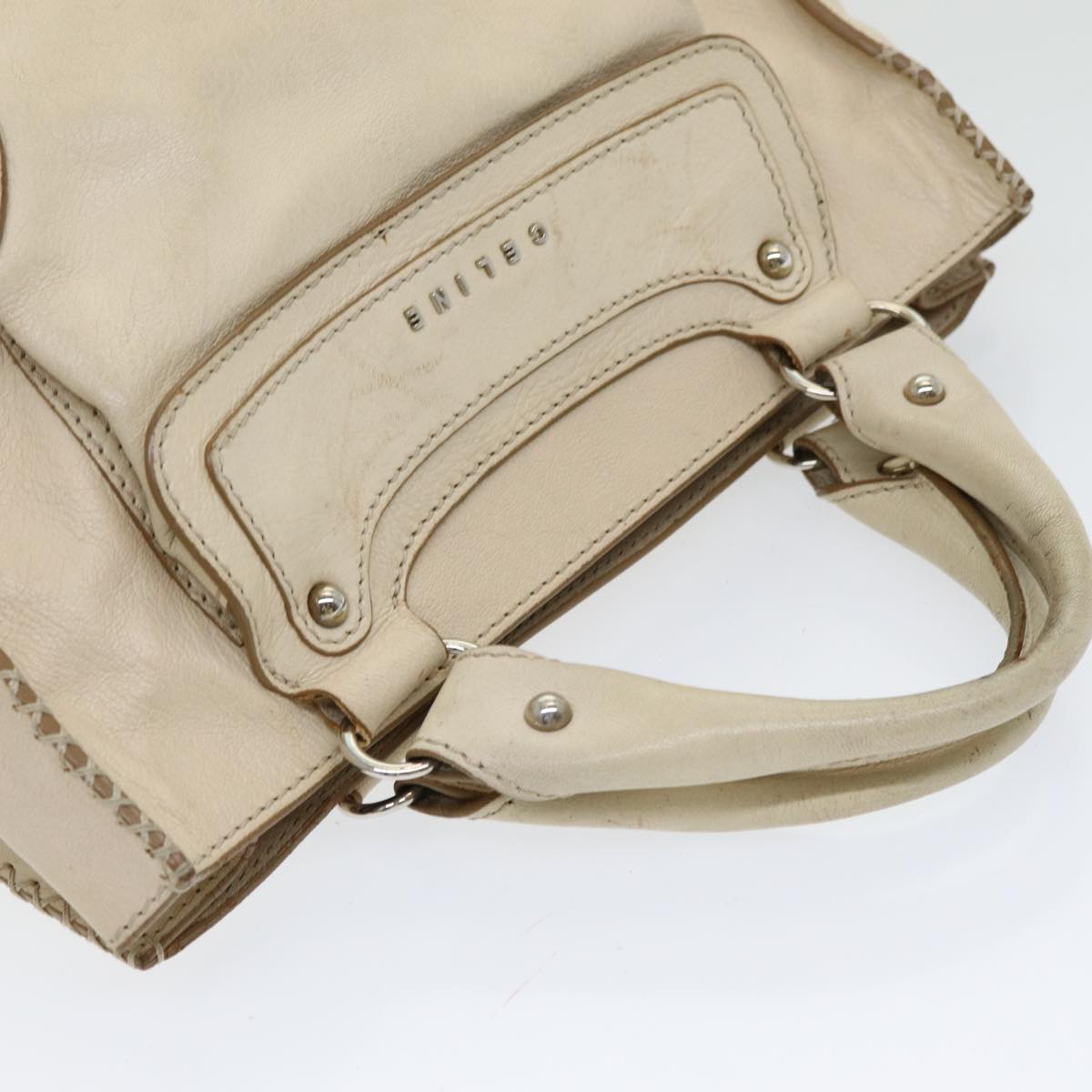 CELINE Boogie bag Hand Bag Leather Beige Silver Auth bs16783