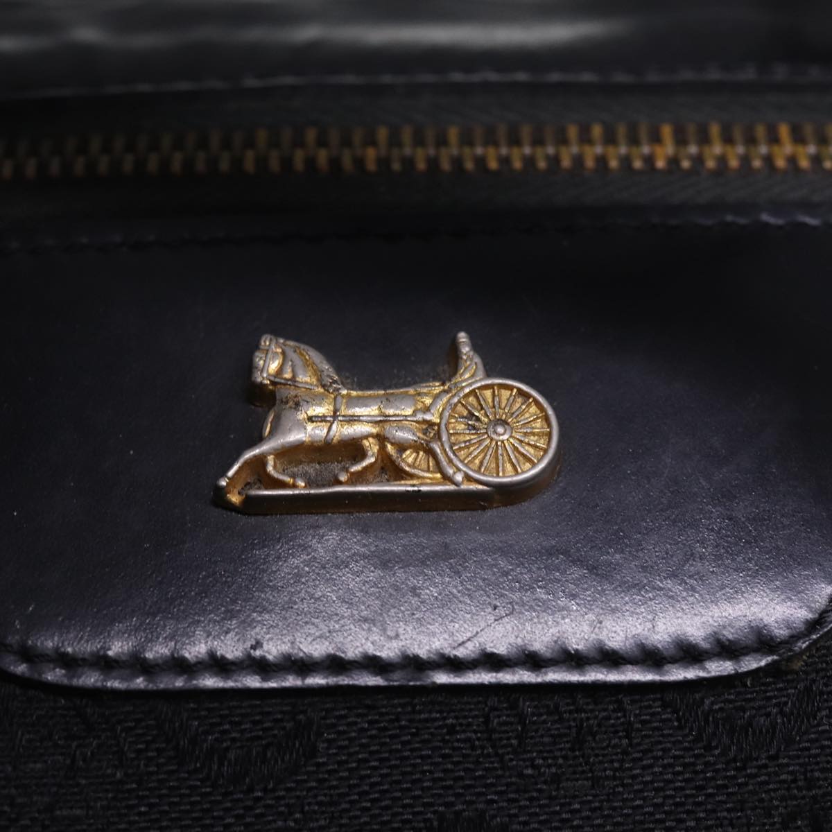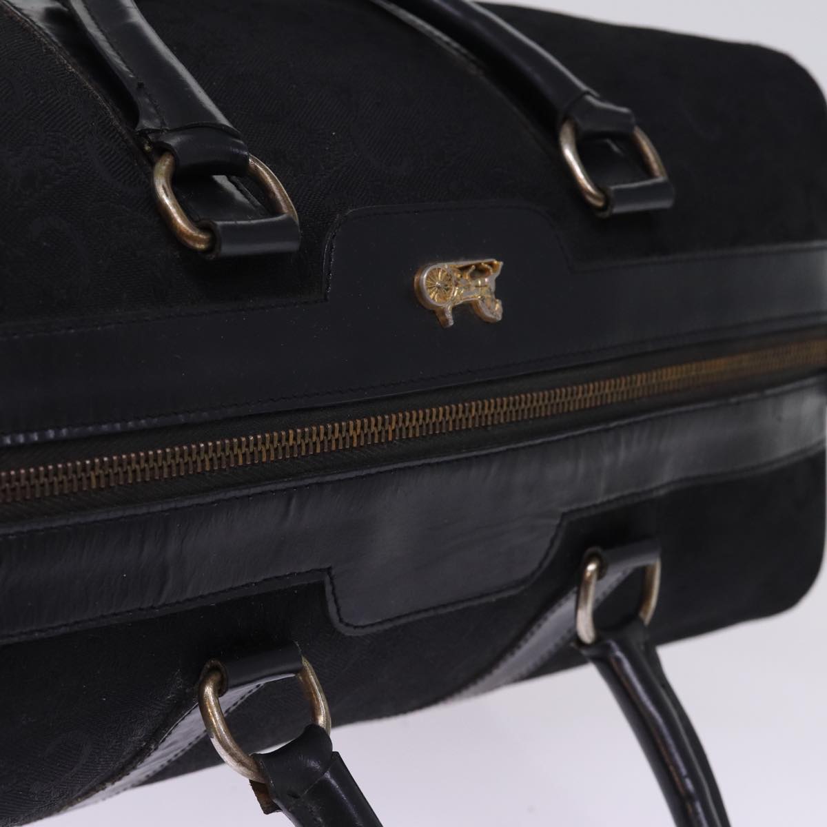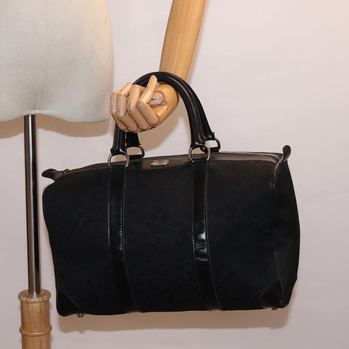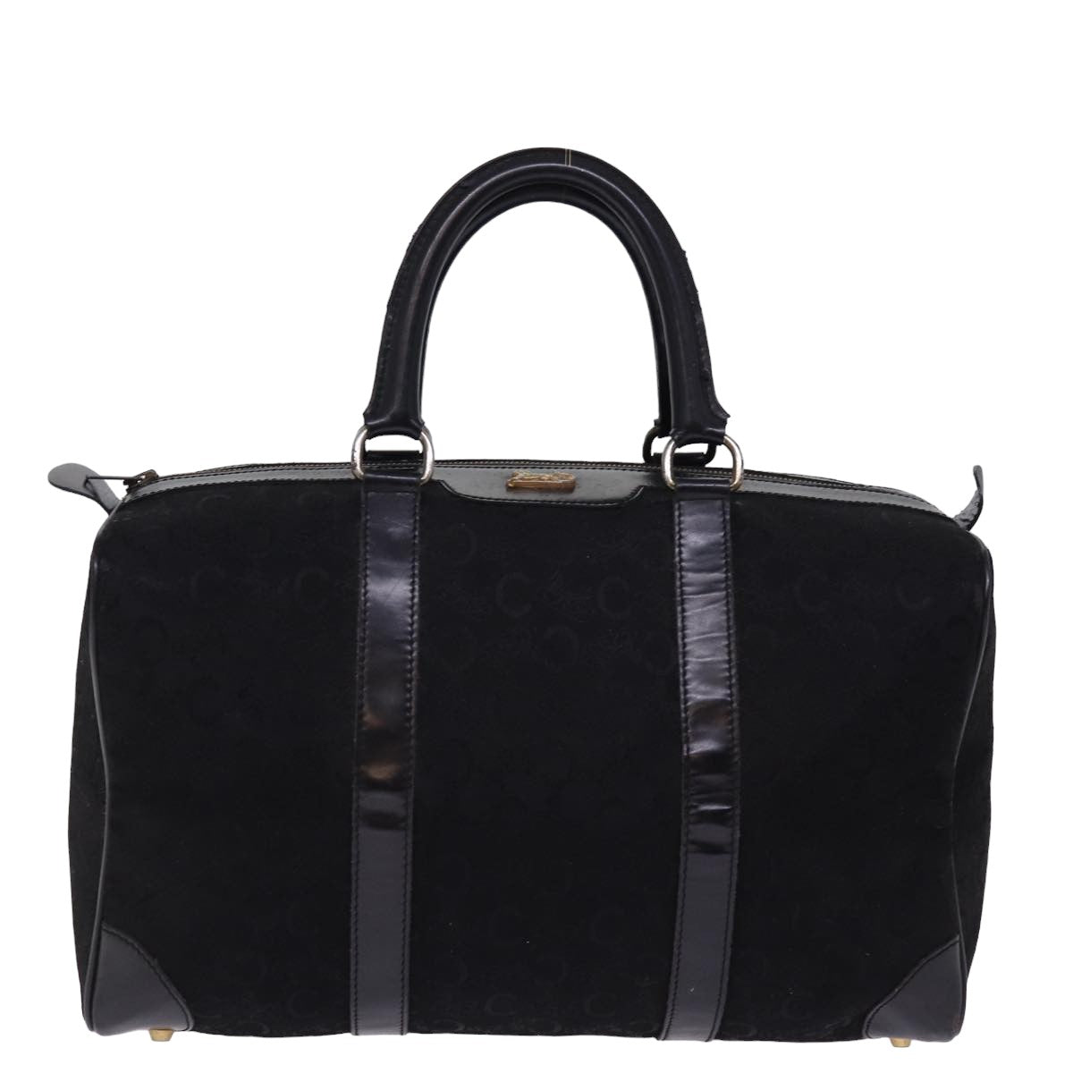 CELINE C Macadam Canvas Boston Bag Black Auth bs15198