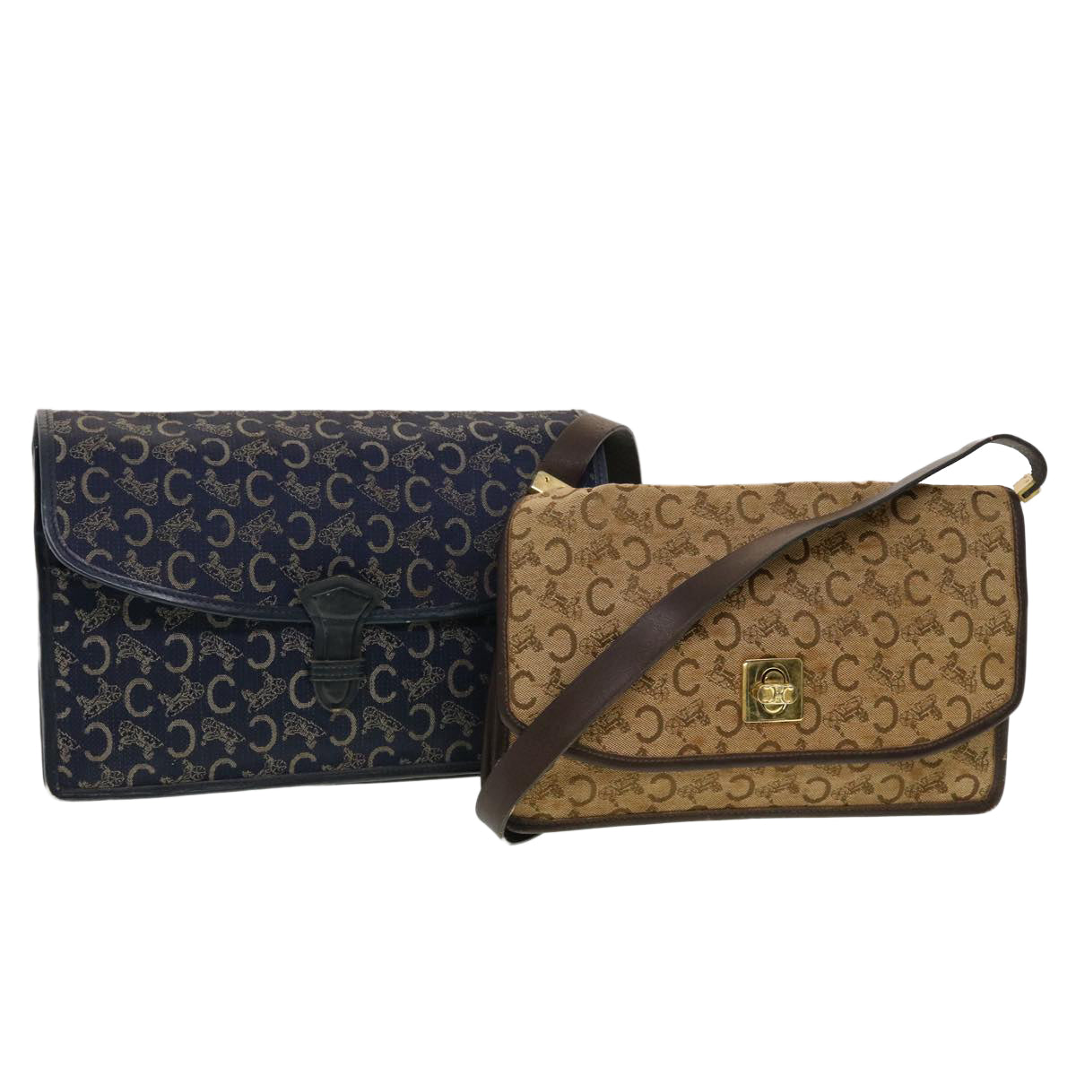 Celine C Macadam Canvas Clutch Shoulder Bag 2Set Beige Navy bs5756