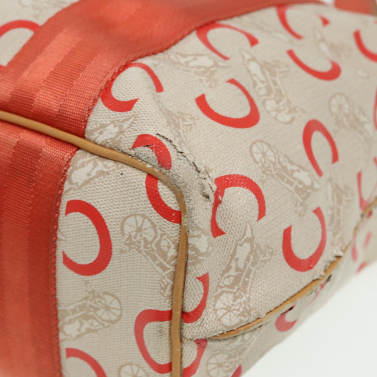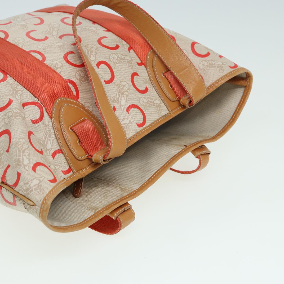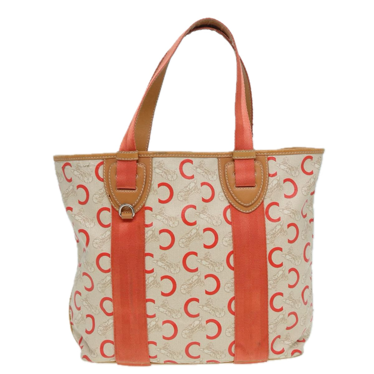CELINE C Macadam Canvas Hand Bag Orange Beige Auth 82896
