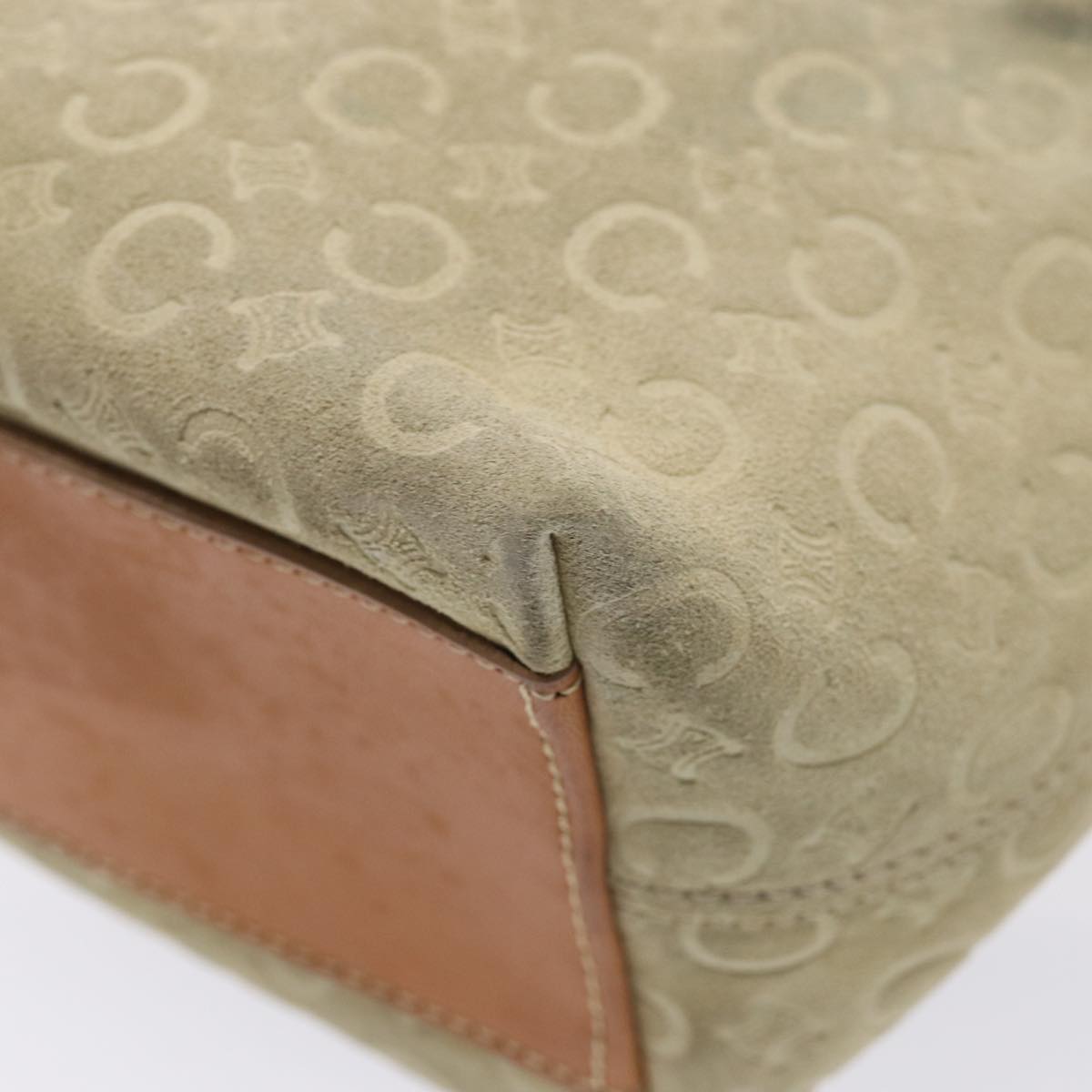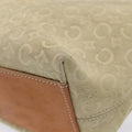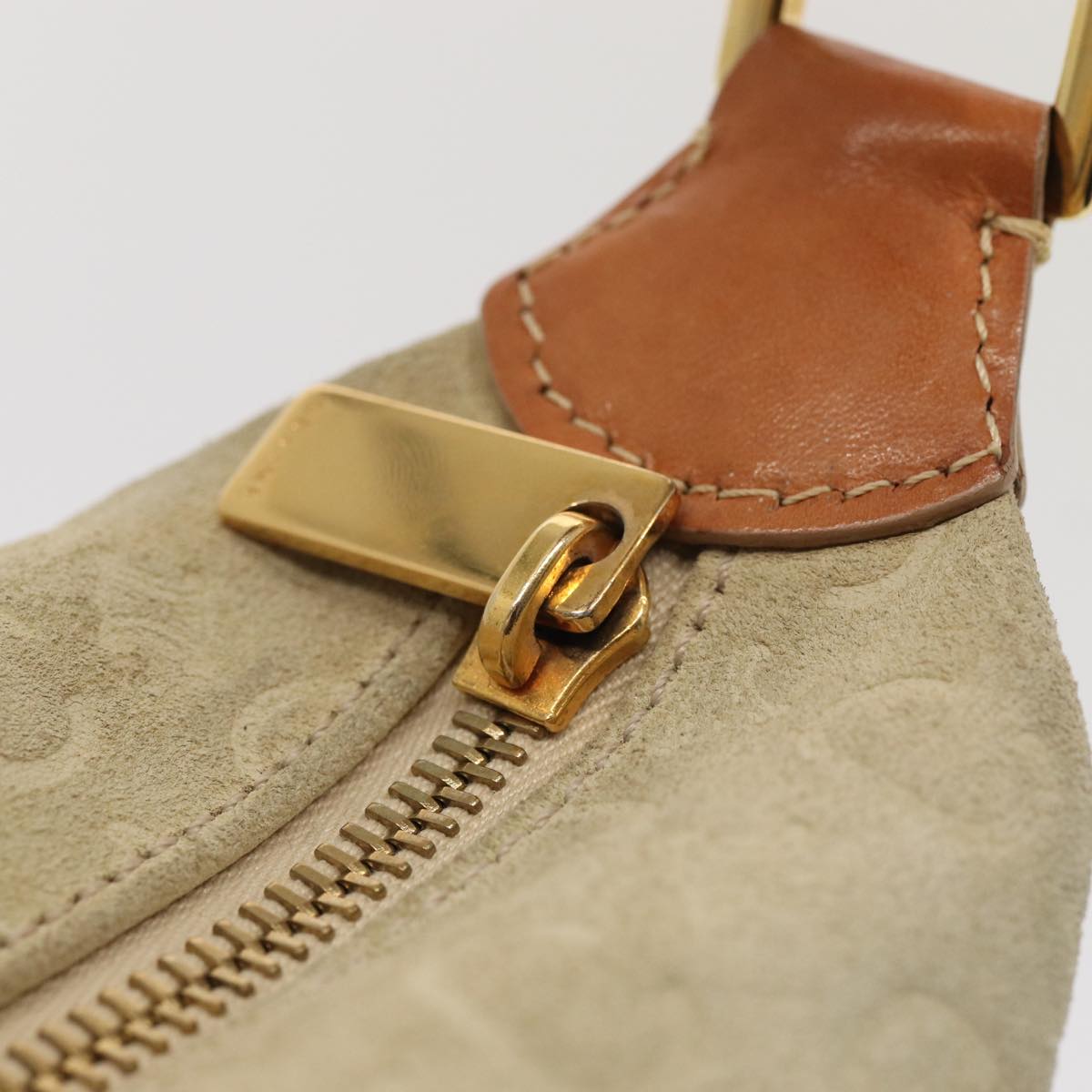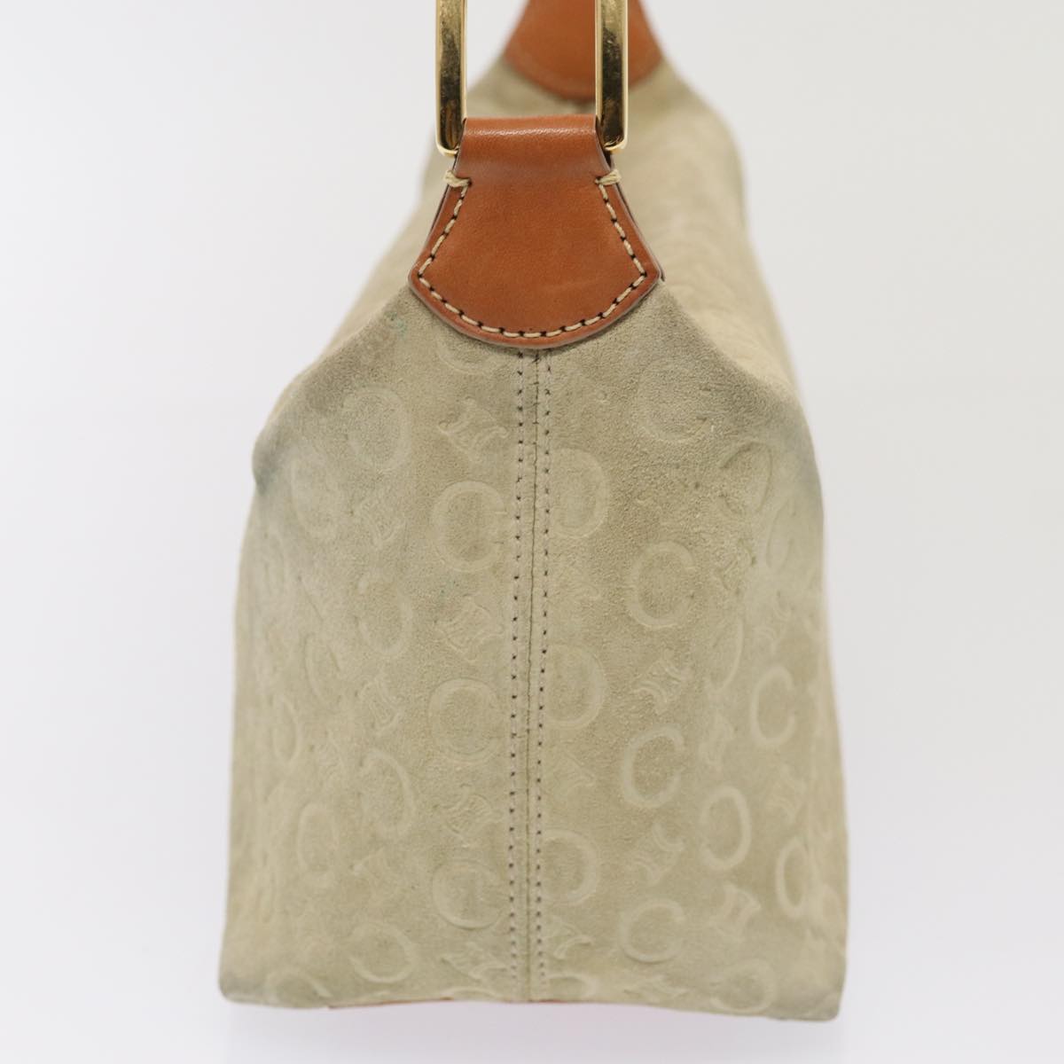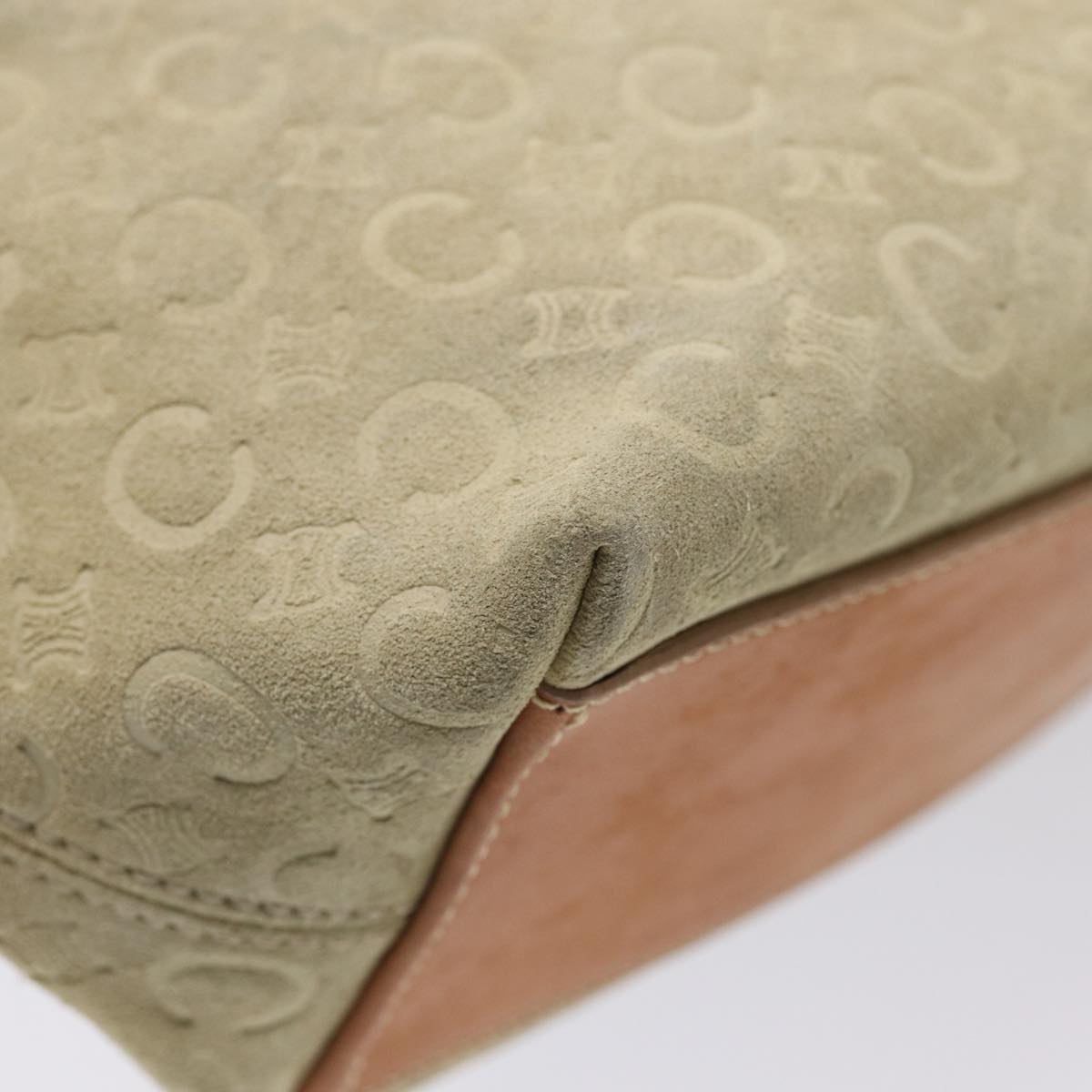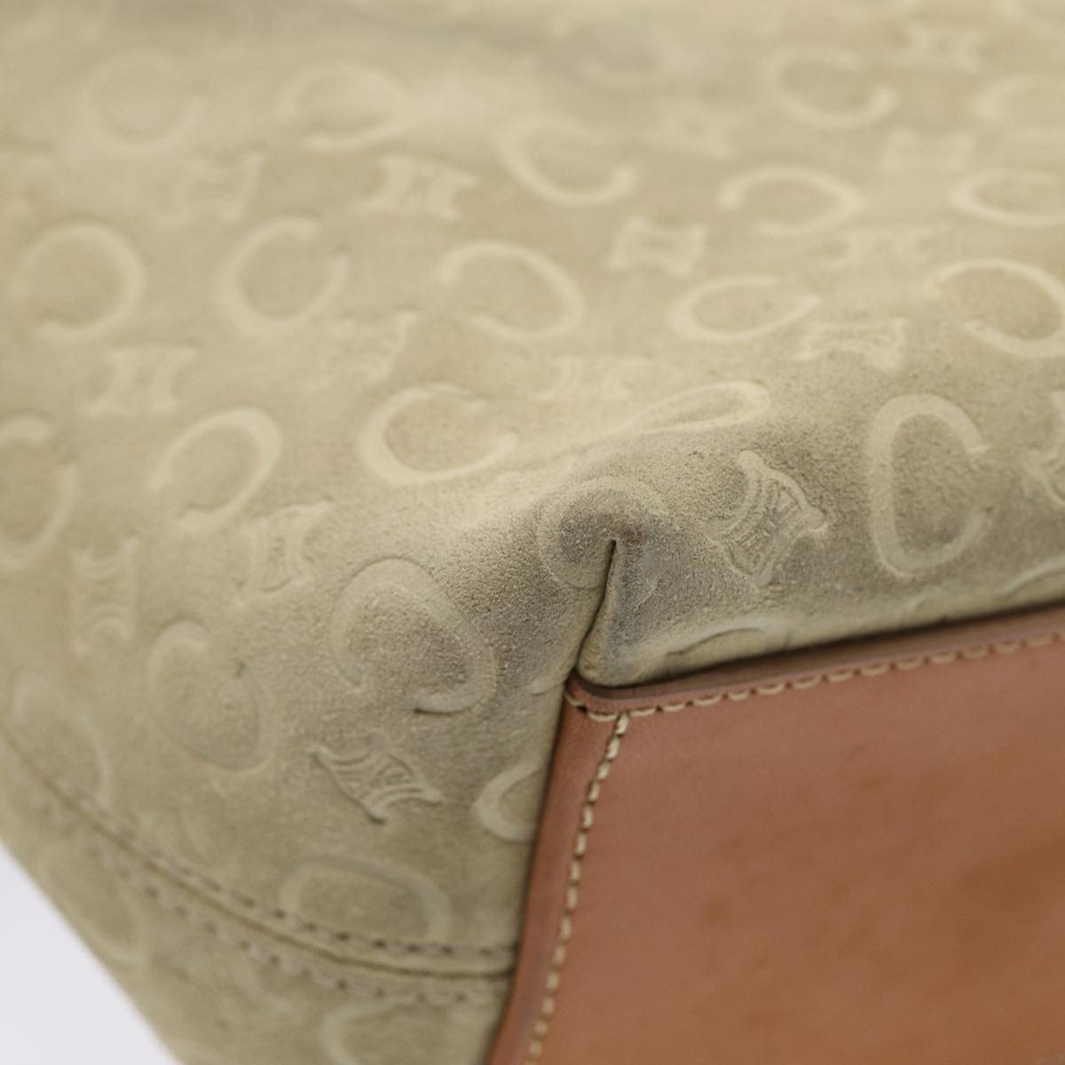 CELINE C Macadam Canvas Hand Bag Suede Cream Brown gold Auth 87002