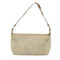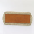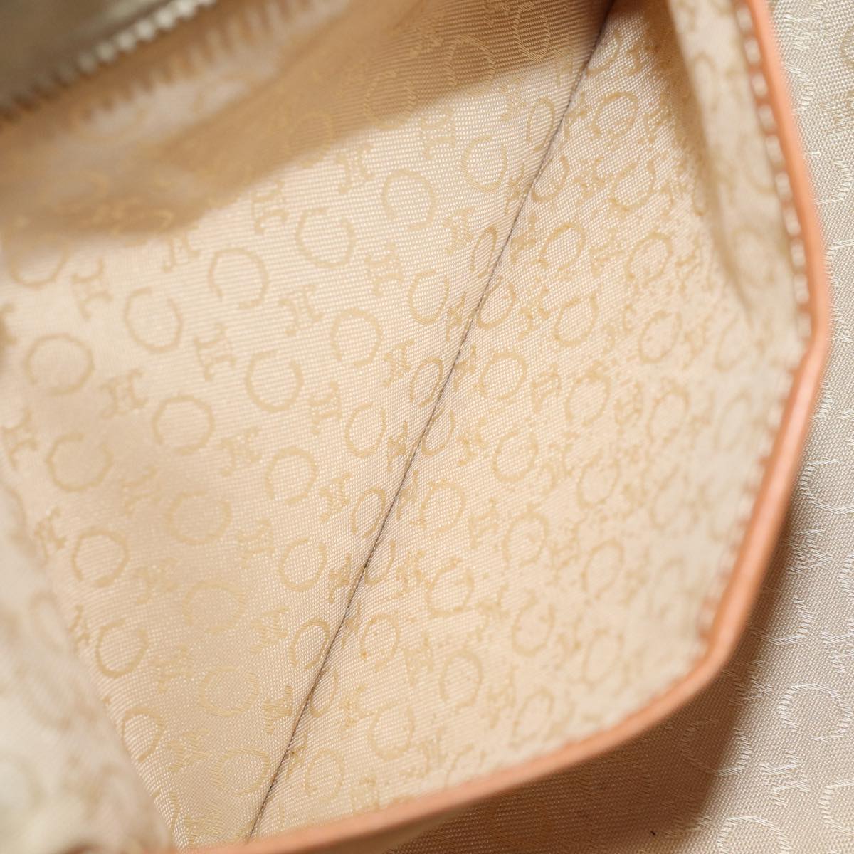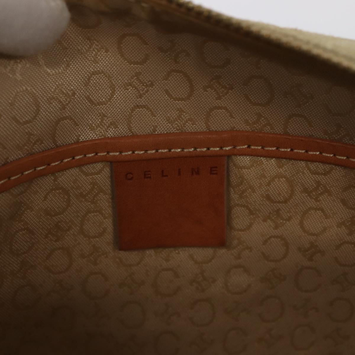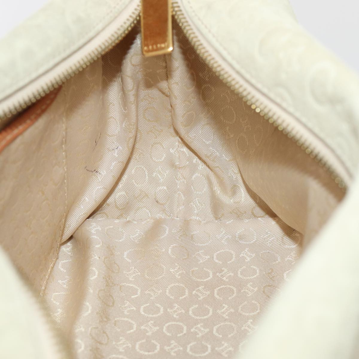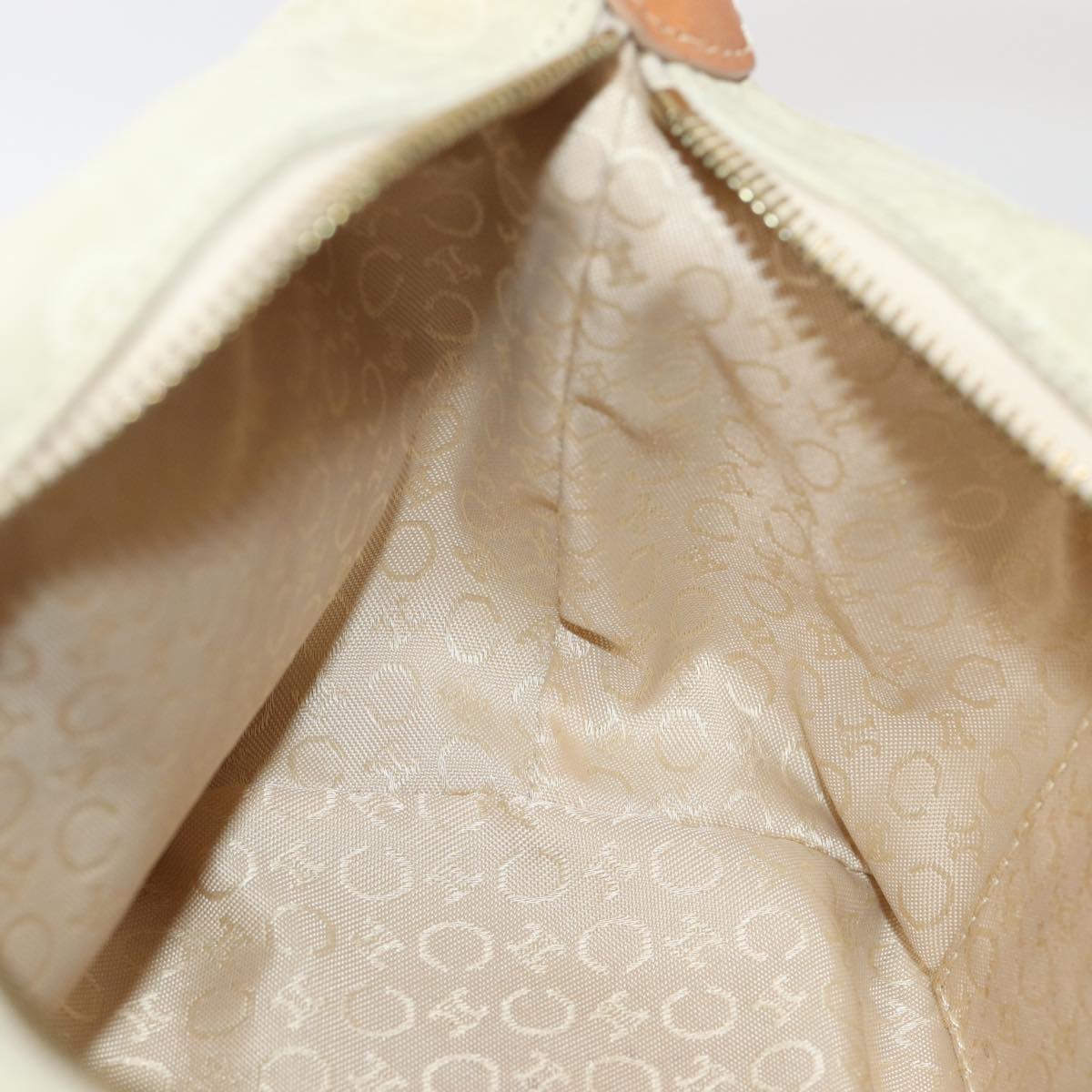 CELINE C Macadam Canvas Hand Bag Suede Cream Brown gold Auth 87002