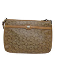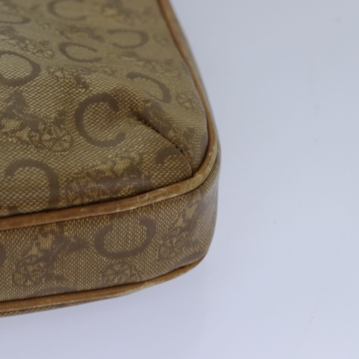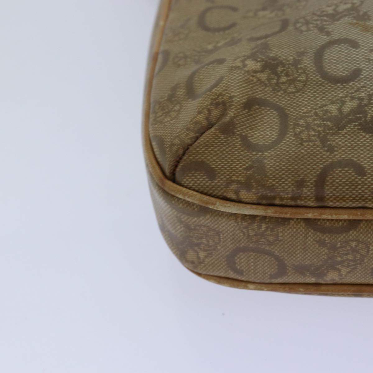 CELINE C Macadam Canvas Shoulder Bag Leather Beige Auth 79305