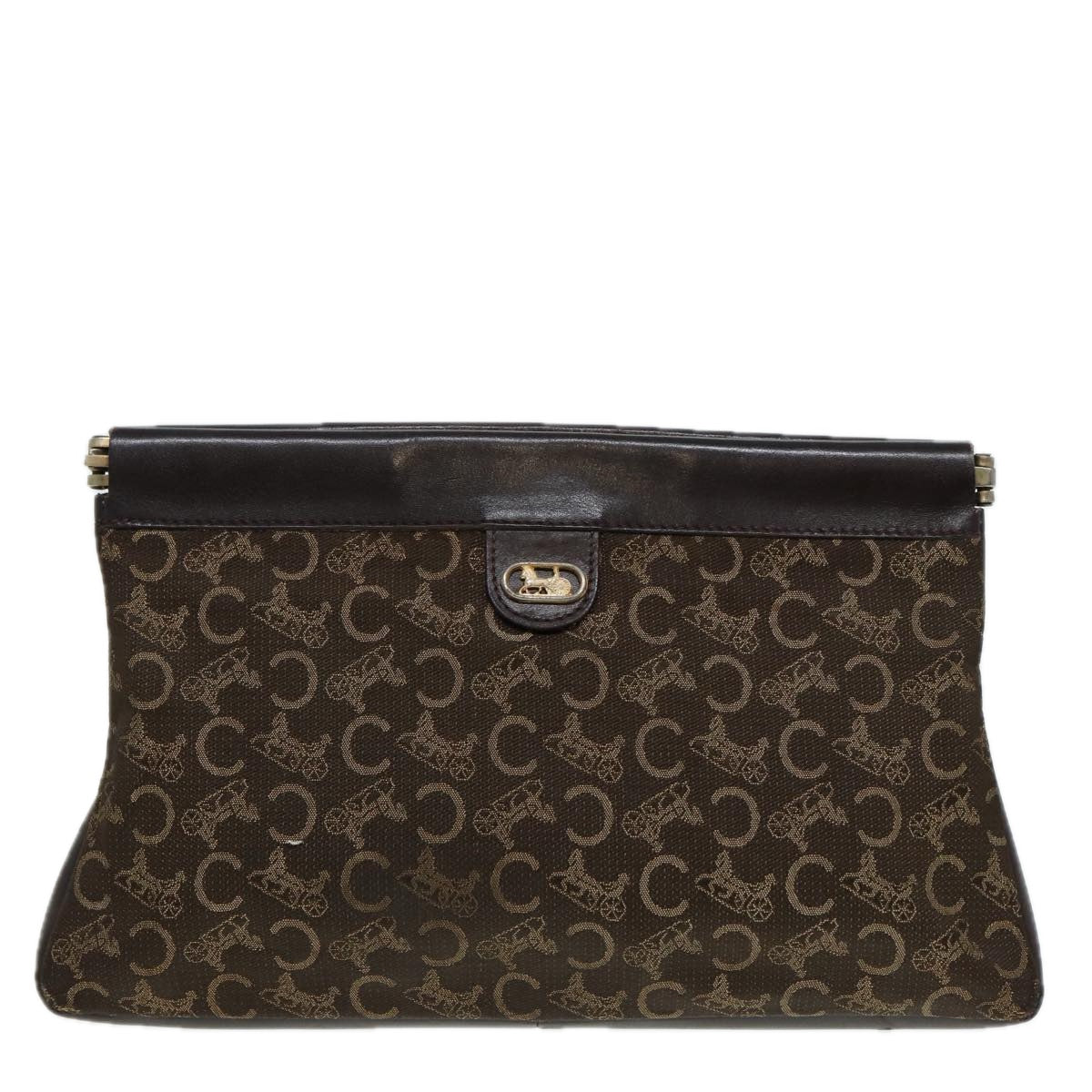 CELINE C saluki Clutch Bag Canvas Brown Auth bs16700