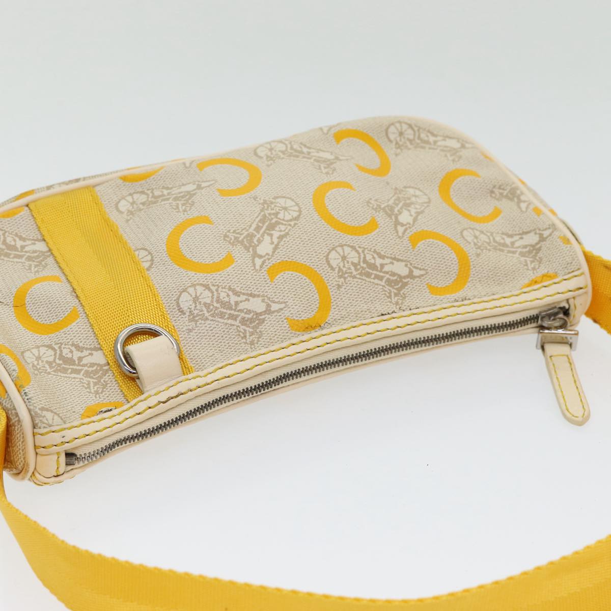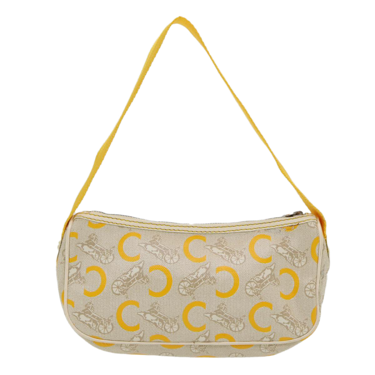 CELINE C Sulky Hand Bag Coated Canvas Silver Beige Auth 85696