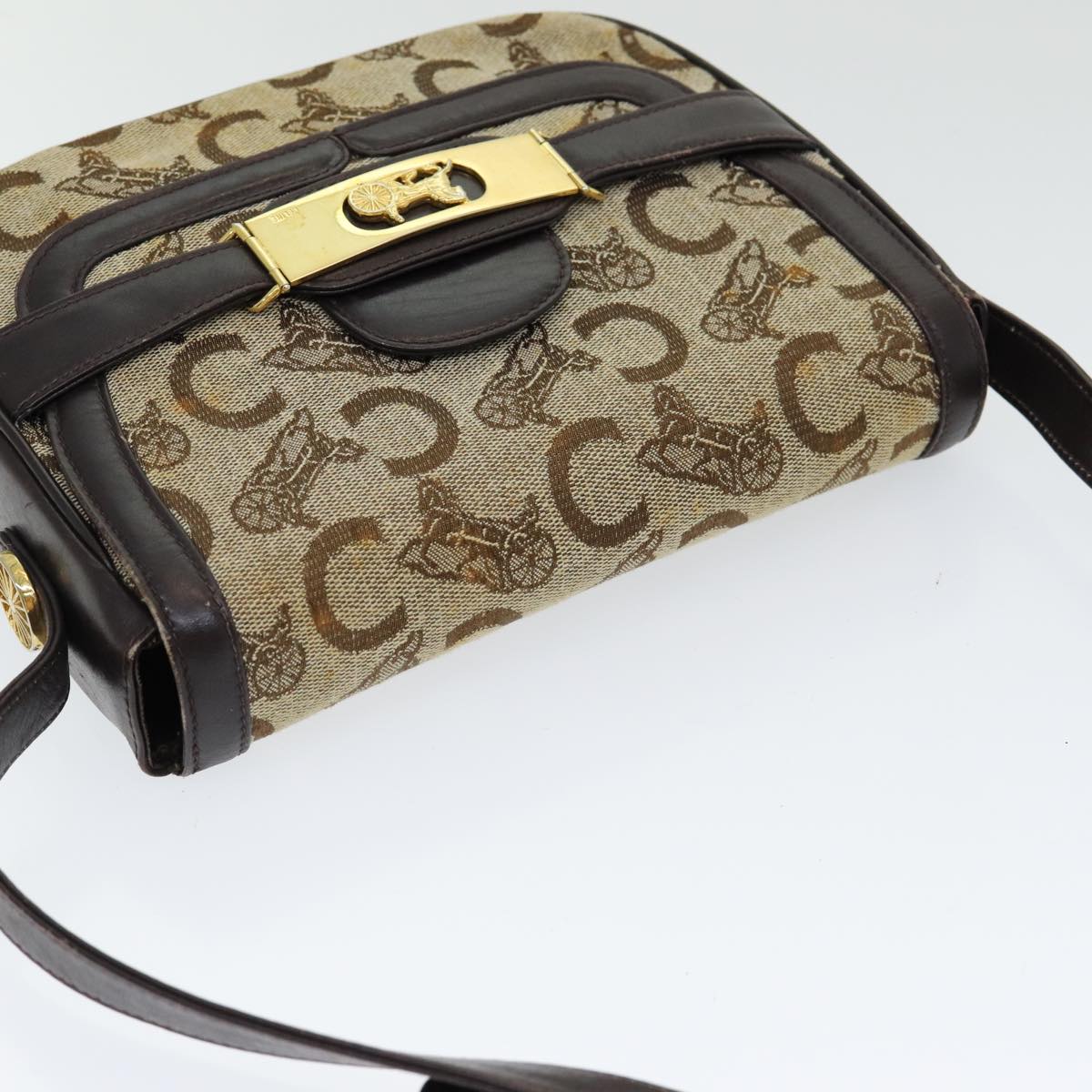 CELINE C Sulky Shoulder Bag Canvas Beige Auth ar12163