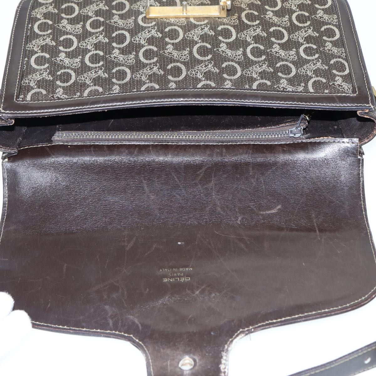 CELINE C Sulky Shoulder Bag Canvas Brown Auth bs16359