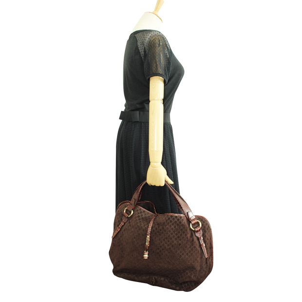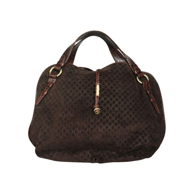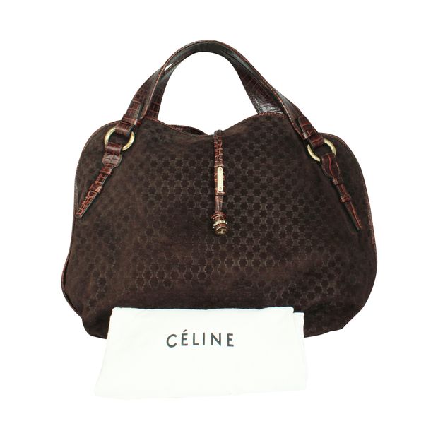 Celine Cã¨Line Vintage Brown Leather Embossed Bag