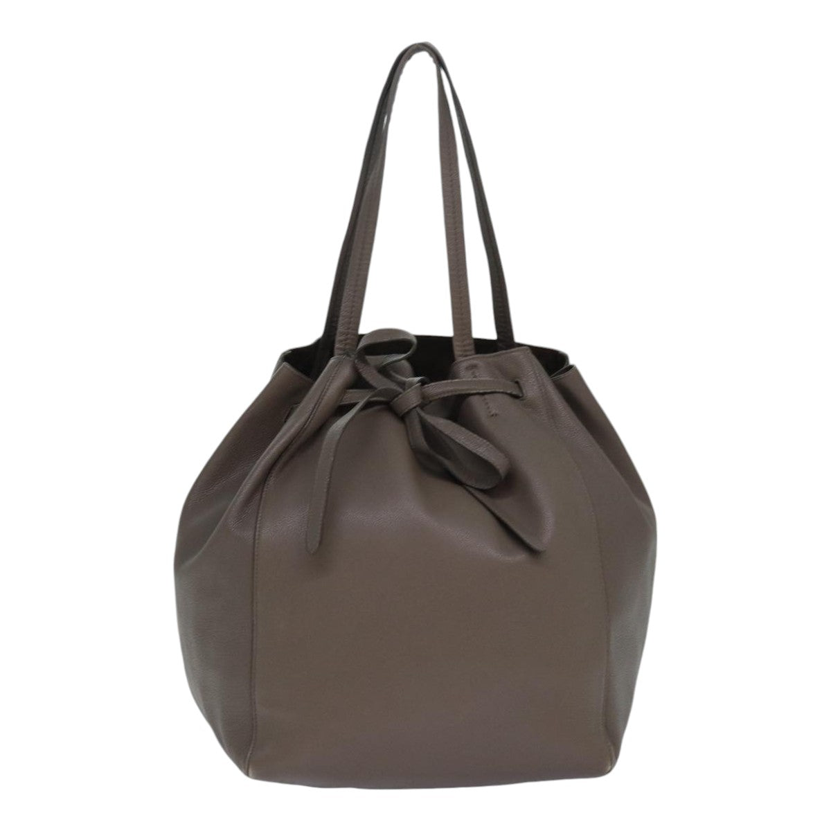 CELINE Cabas Phantom Small Tote Bag Leather Gray Gold Auth 85864