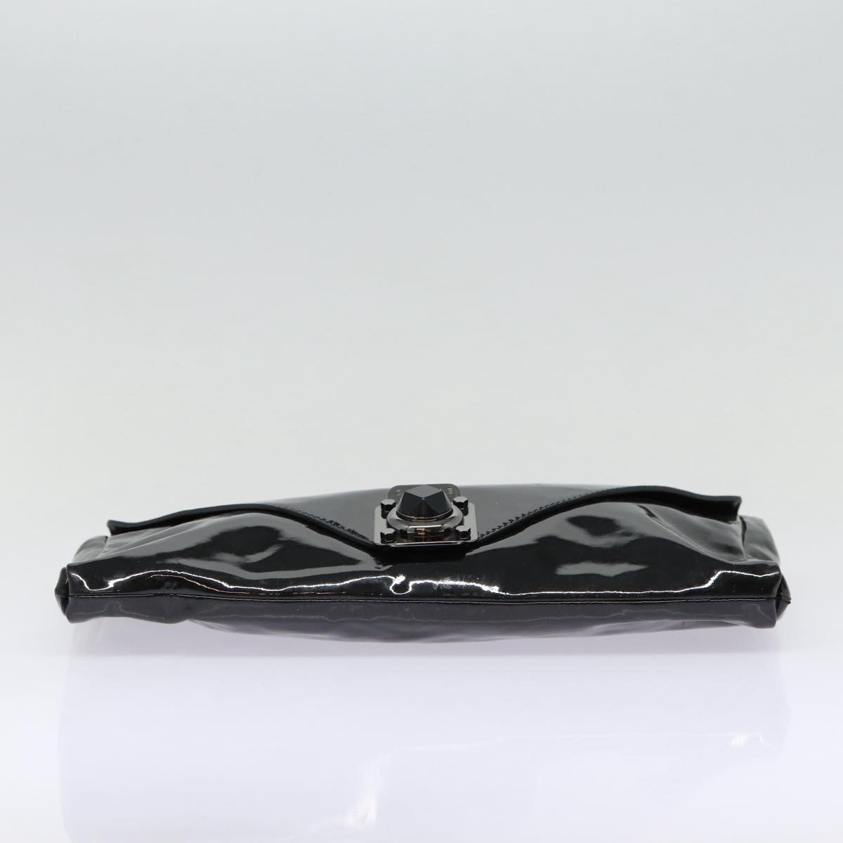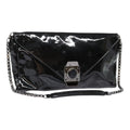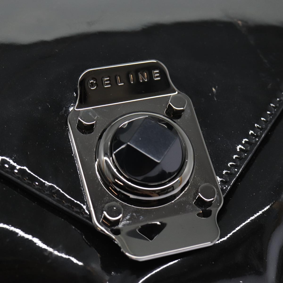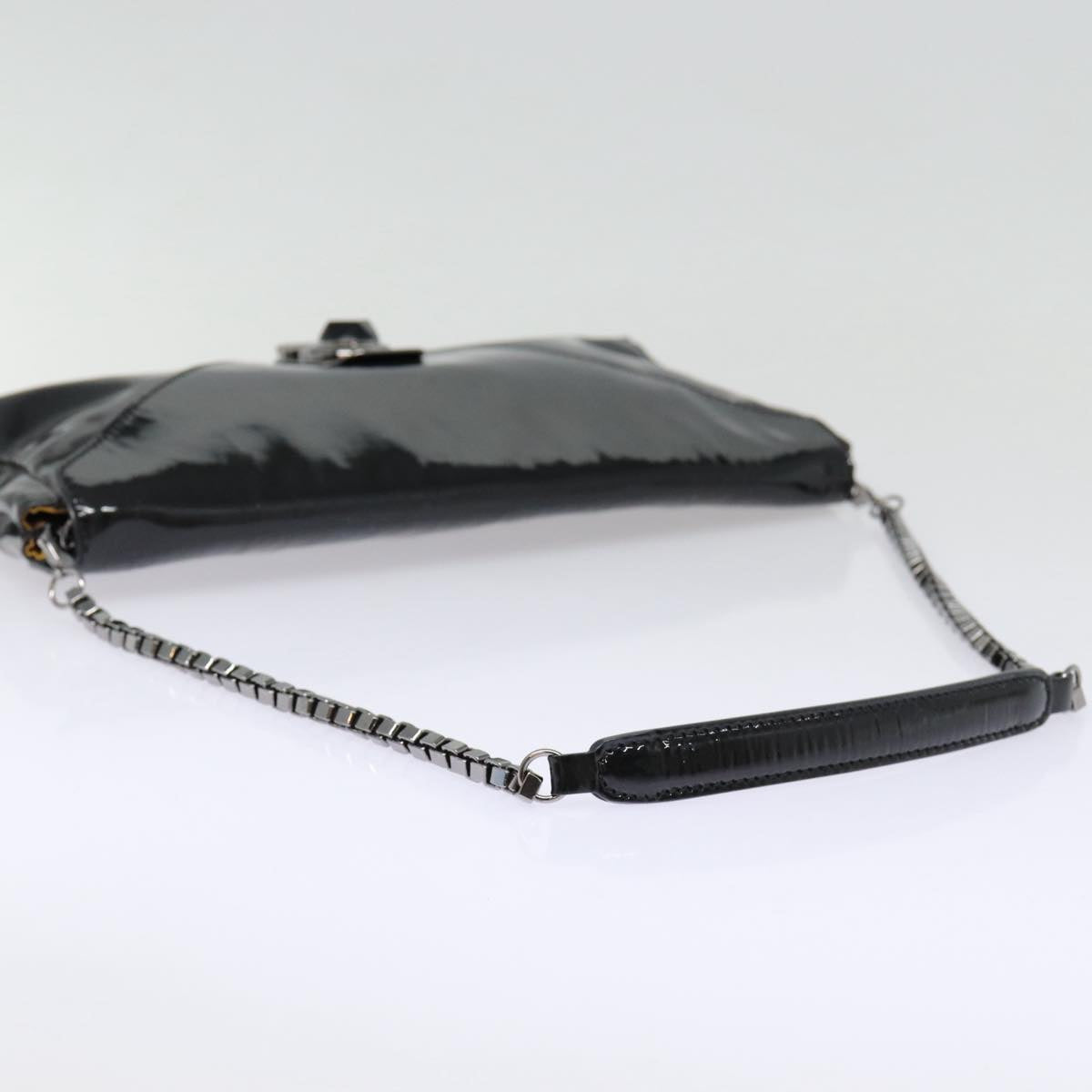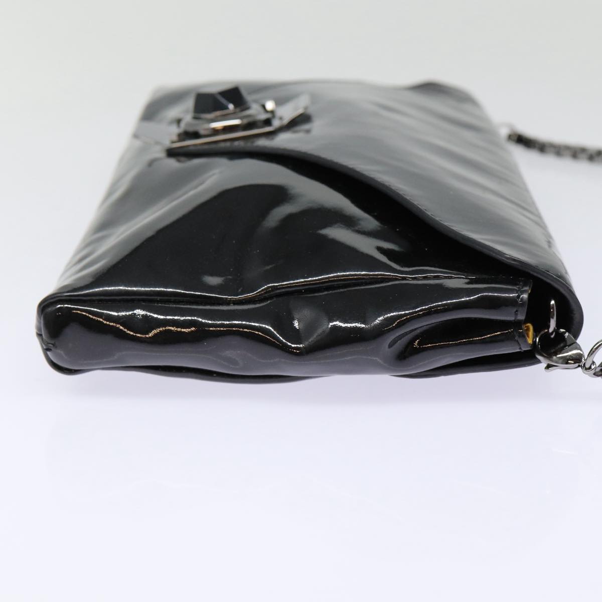 CELINE Chain Shoulder Bag Enamel Black Silver Auth yk14305
