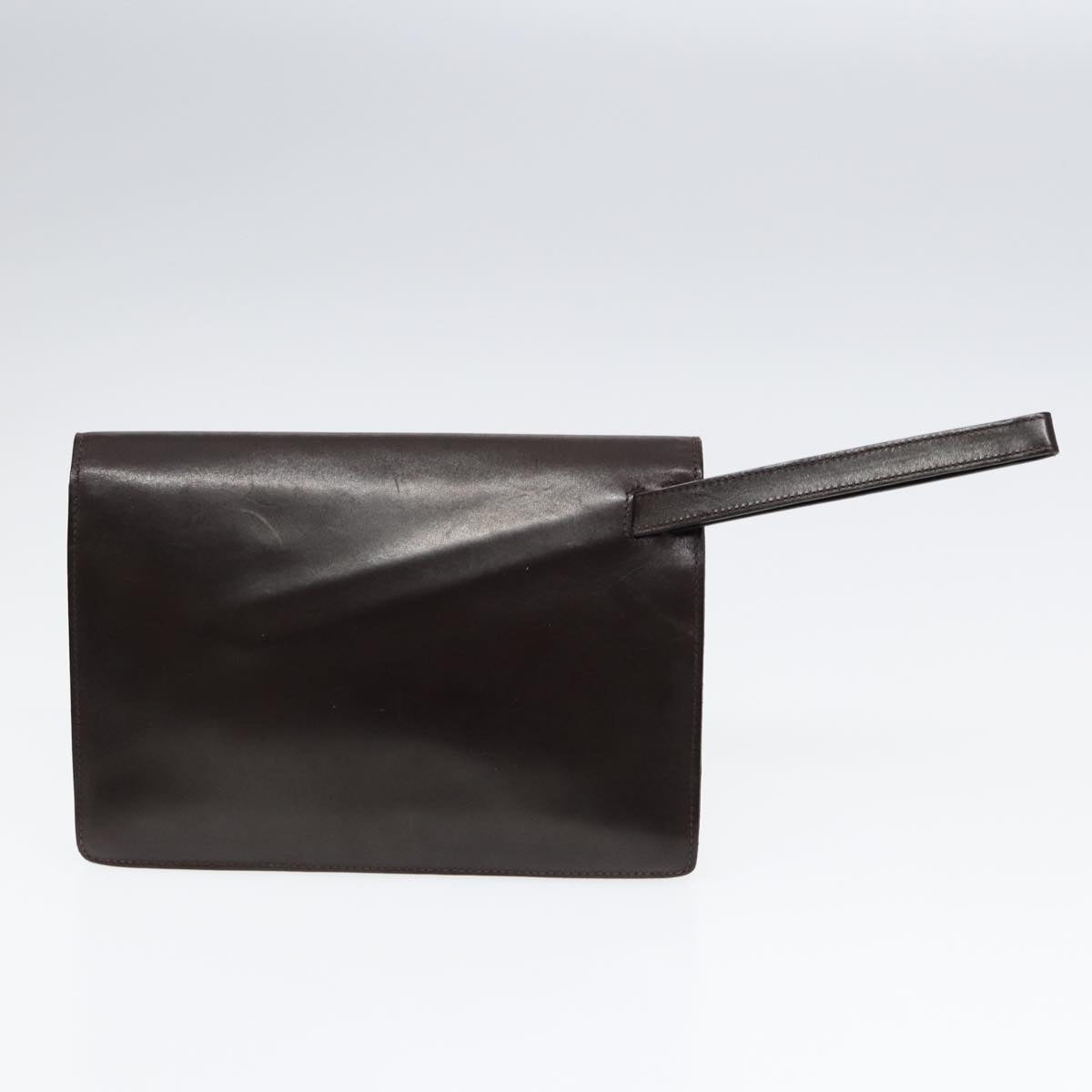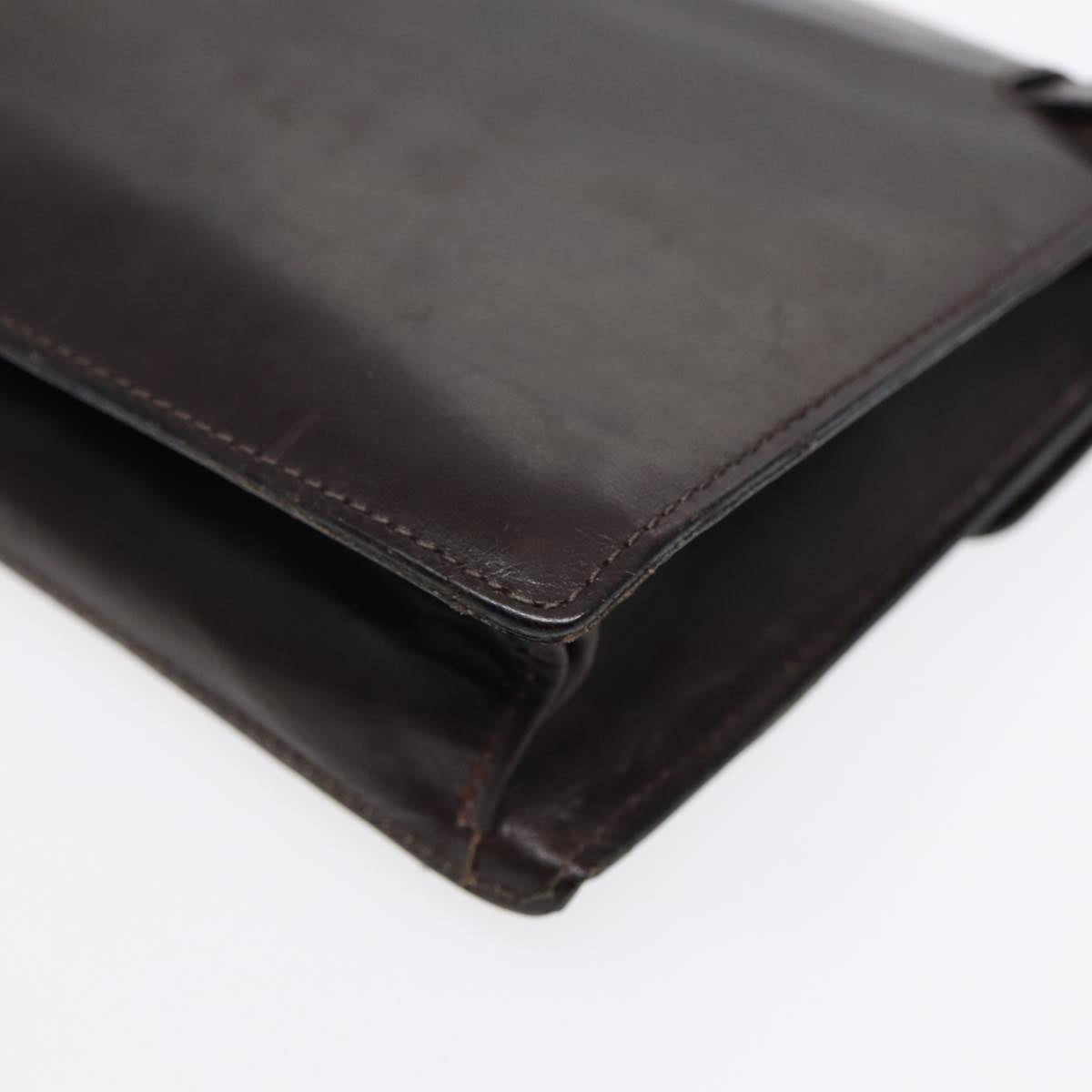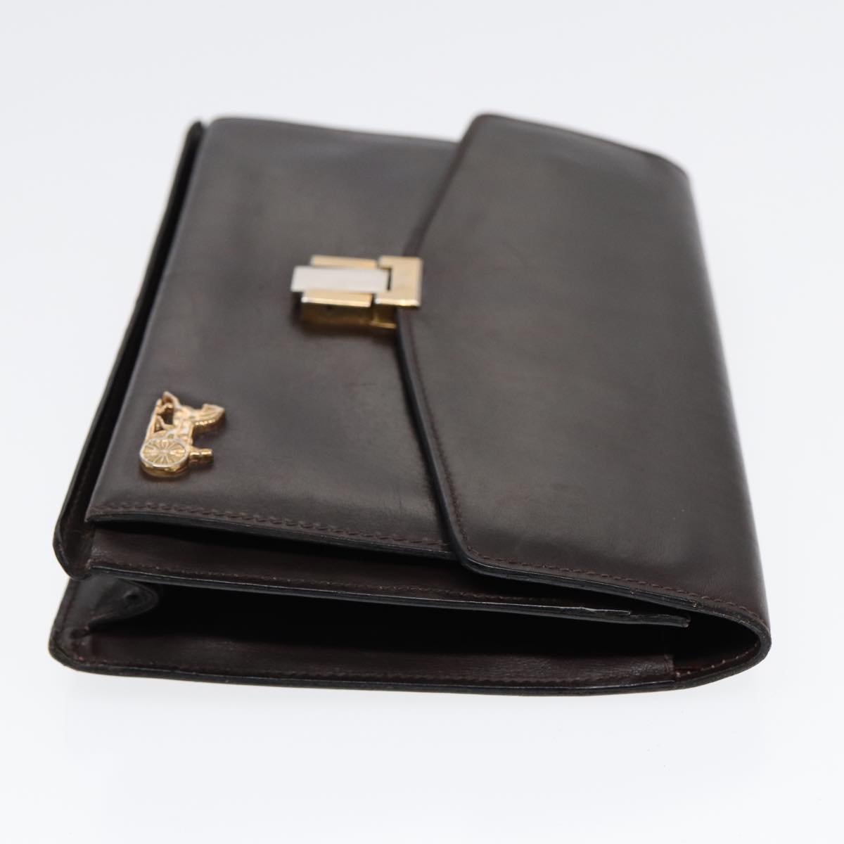 CELINE Clutch Bag Leather Brown Gold Auth bs16841