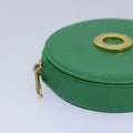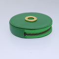 CELINE Coin Purse Leather Green Gold Auth 87854