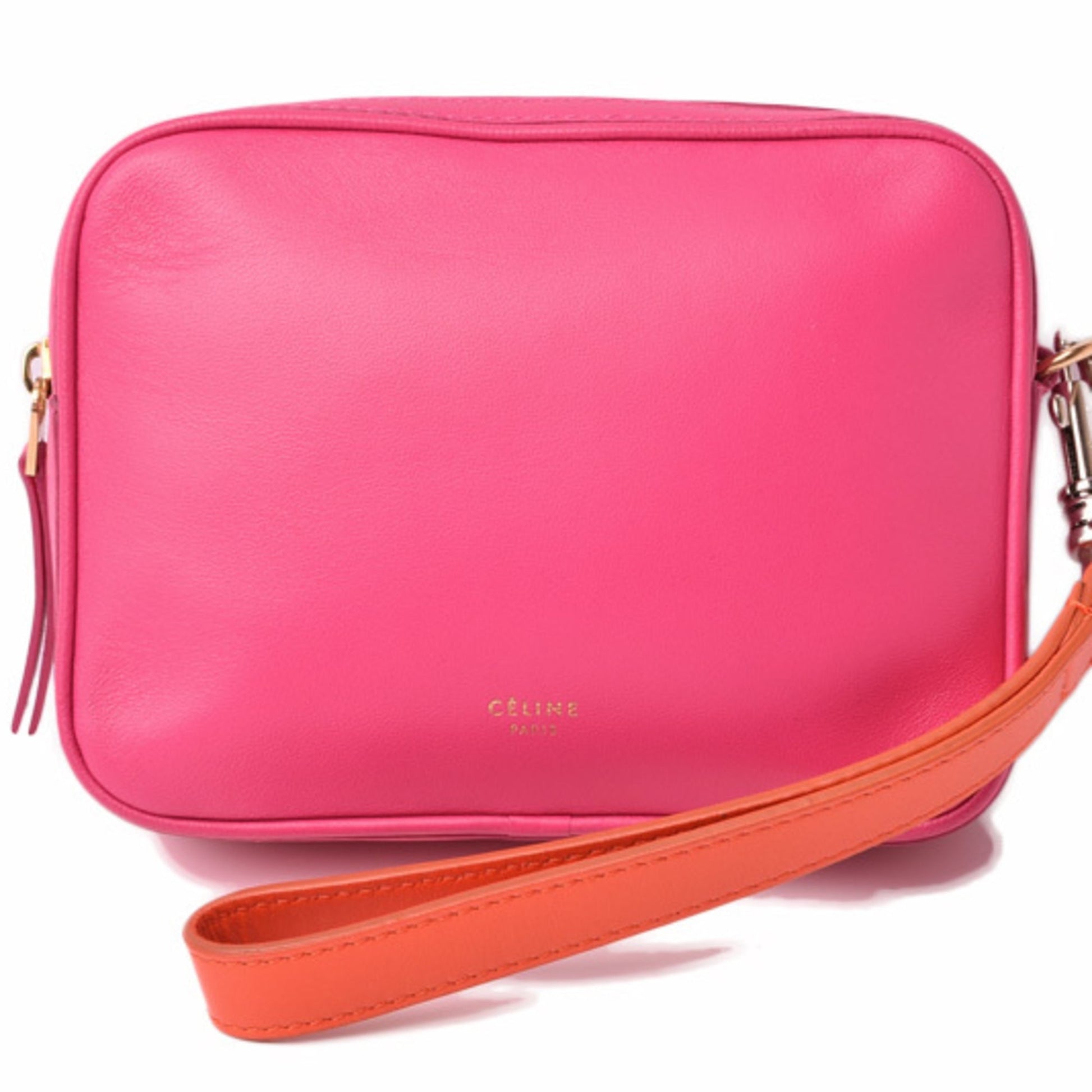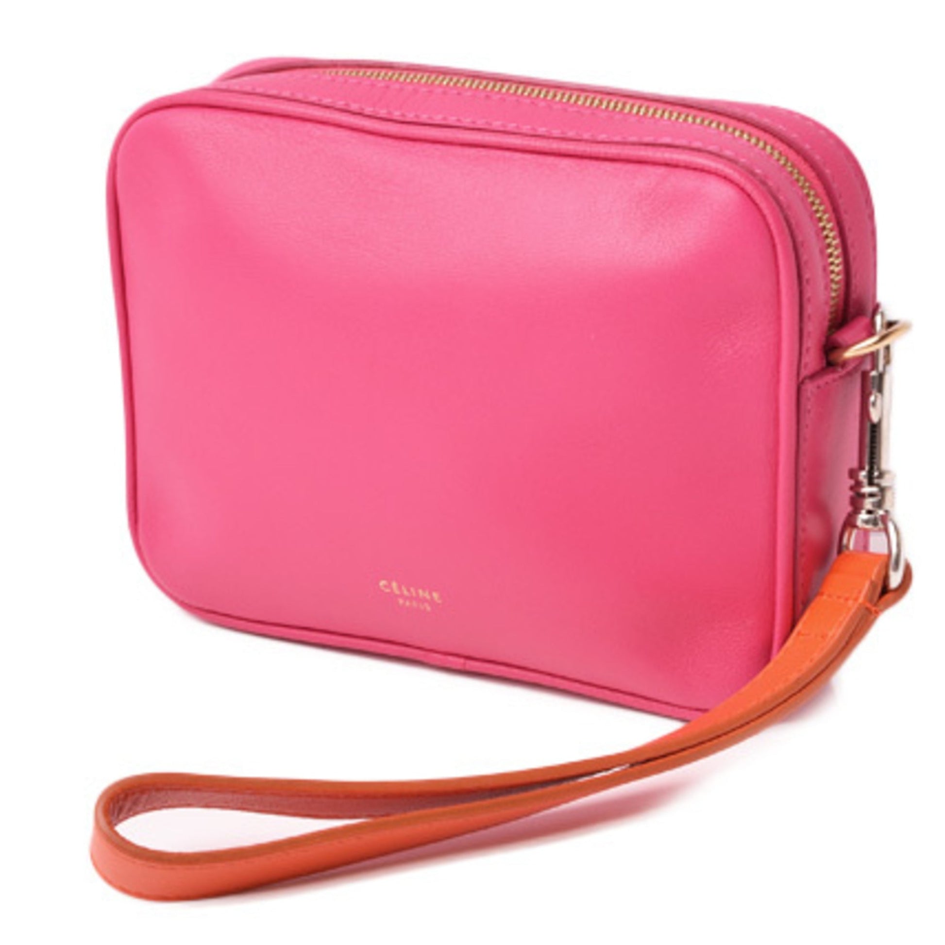 Celine Cosmetic Pouch Accessory Case Smartphone Celine Leather with Hand Strap Black