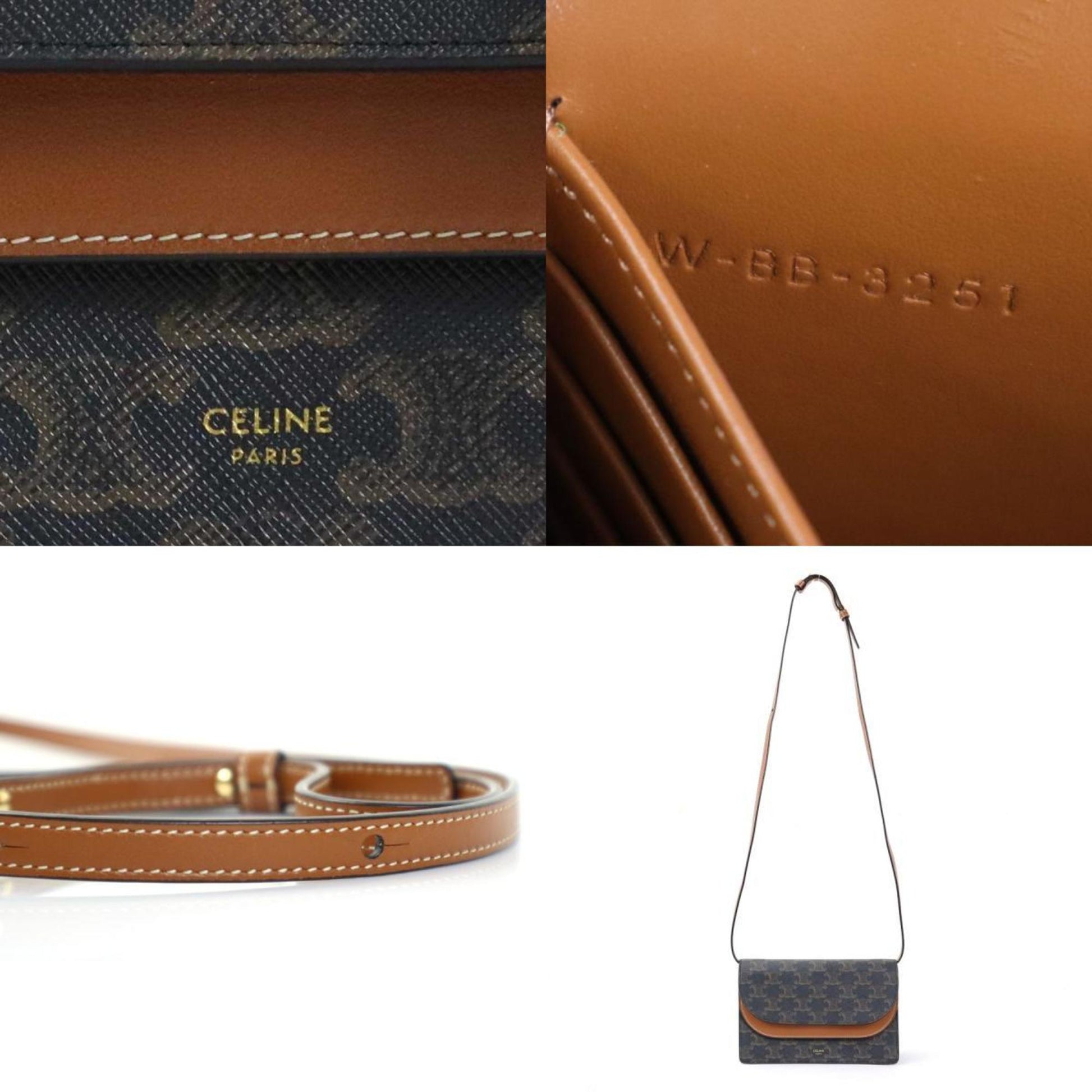 Celine Crossbody Shoulder Bag Wallet Triomphe Coated Canvas Brown Unisex