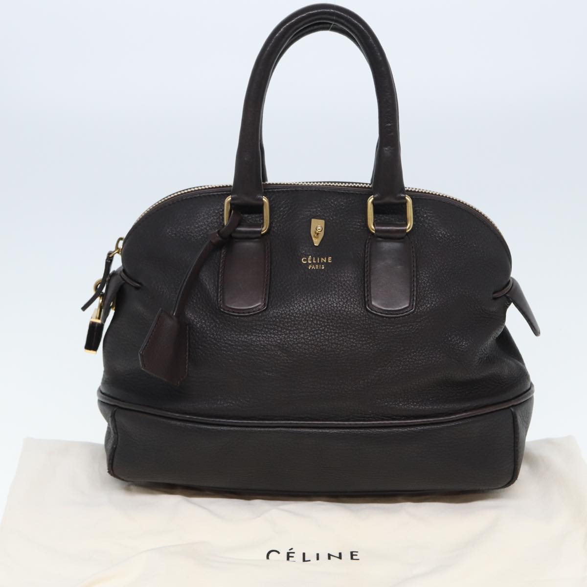 CELINE Hand Bag Leather Brown Auth bs15316